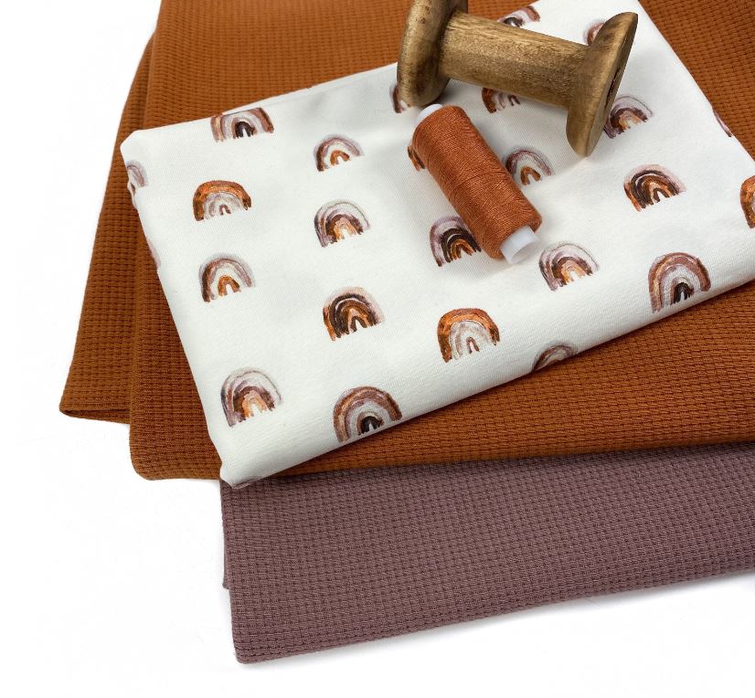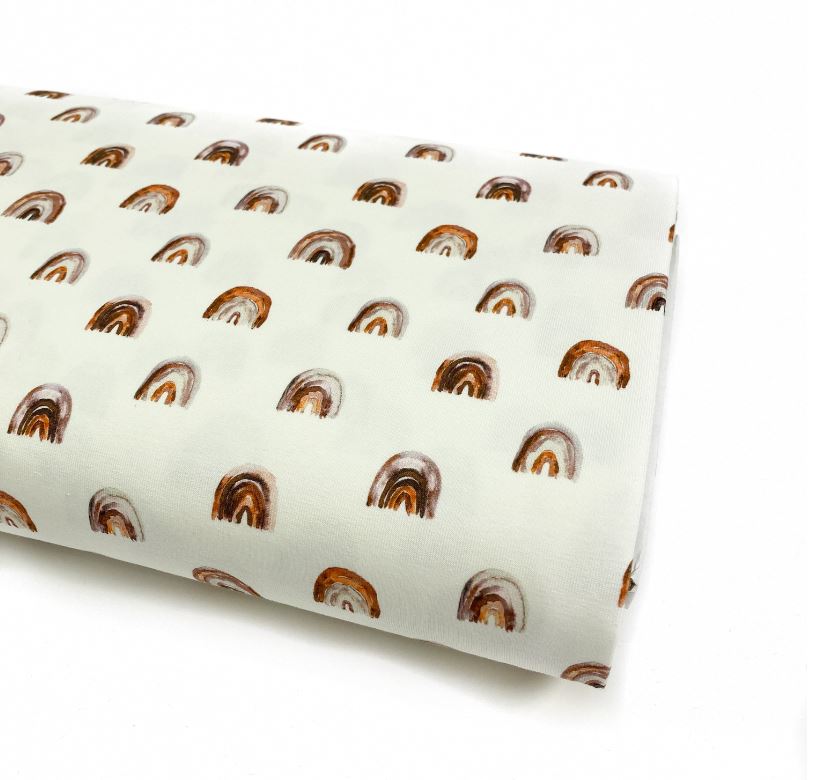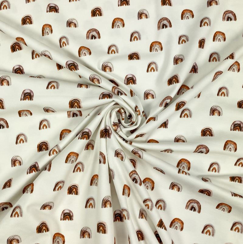 Wunderschöner Jersey mit aktuellem Regenbogen Muster. Sehr schön um Kleider, Shirts, Leggings oder ähnliches daraus zu nähen.