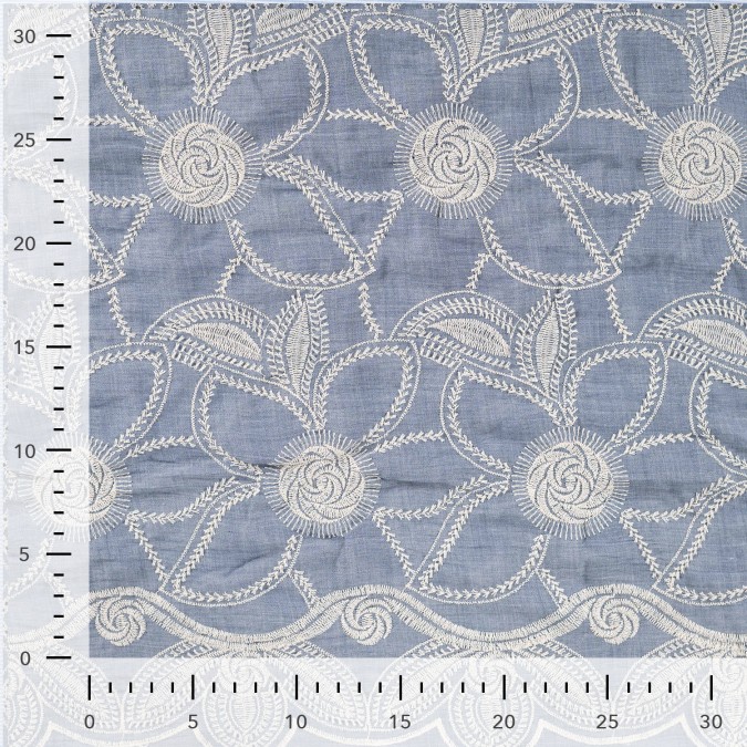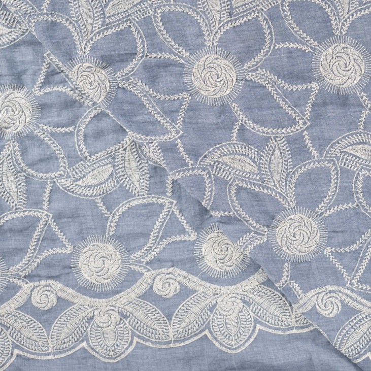 Hochwertige bestickte Baumwolle mit liebevoll gearbeiteten Stickereien im floralem Design. Das detailreiche Muster verleiht dem Stoff eine besondere Tiefe und eine edle, handwerkliche Optik. Die natürliche Baumwollqualität sorgt für ein angenehmes Tragegefühl, ist atmungsaktiv und hautfreundlich.