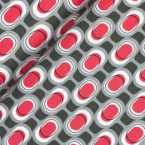 Barcloth gedruckt. Dieser Stoff ähnelt Leinen, ist aber aus reiner Bio Baumwolle. Er fällt deutlich schwerer und ist von der Stuktur her grober. Ein hervorragender Stoff für eure Taschenprojekte. Mutige nähen sich aus den aufälligen Mustern auch Jacke, Rock oder Hose.