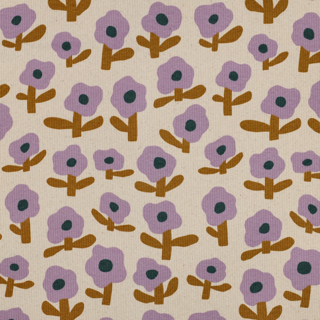 Bio Ripp Jersey - Flowers - flieder/ecru/senf - by Jennifer Bouron
