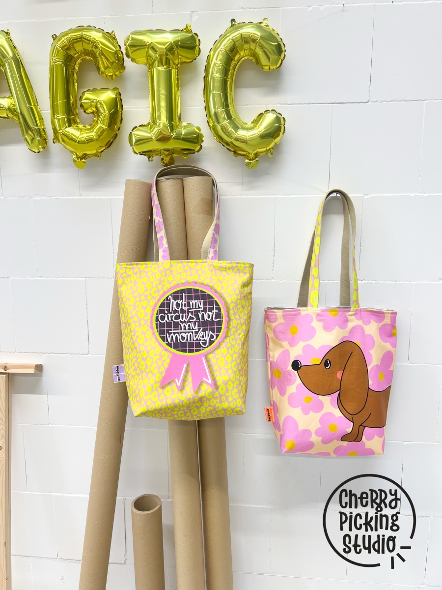 Preview: Canvas - Bag Panel - Dackel Blumen Leo - gelb/beere - by Cherry Picking - Swafing
