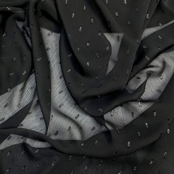 Wunderschöner zarter Chiffon mit eingewebten kleinen Glanzfäden. Er ist transparent und eignet sich sehr für festliche Blusen oder Kleider.