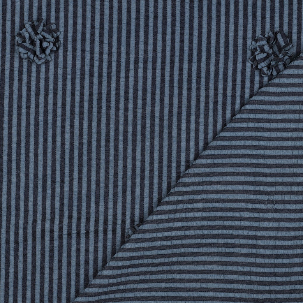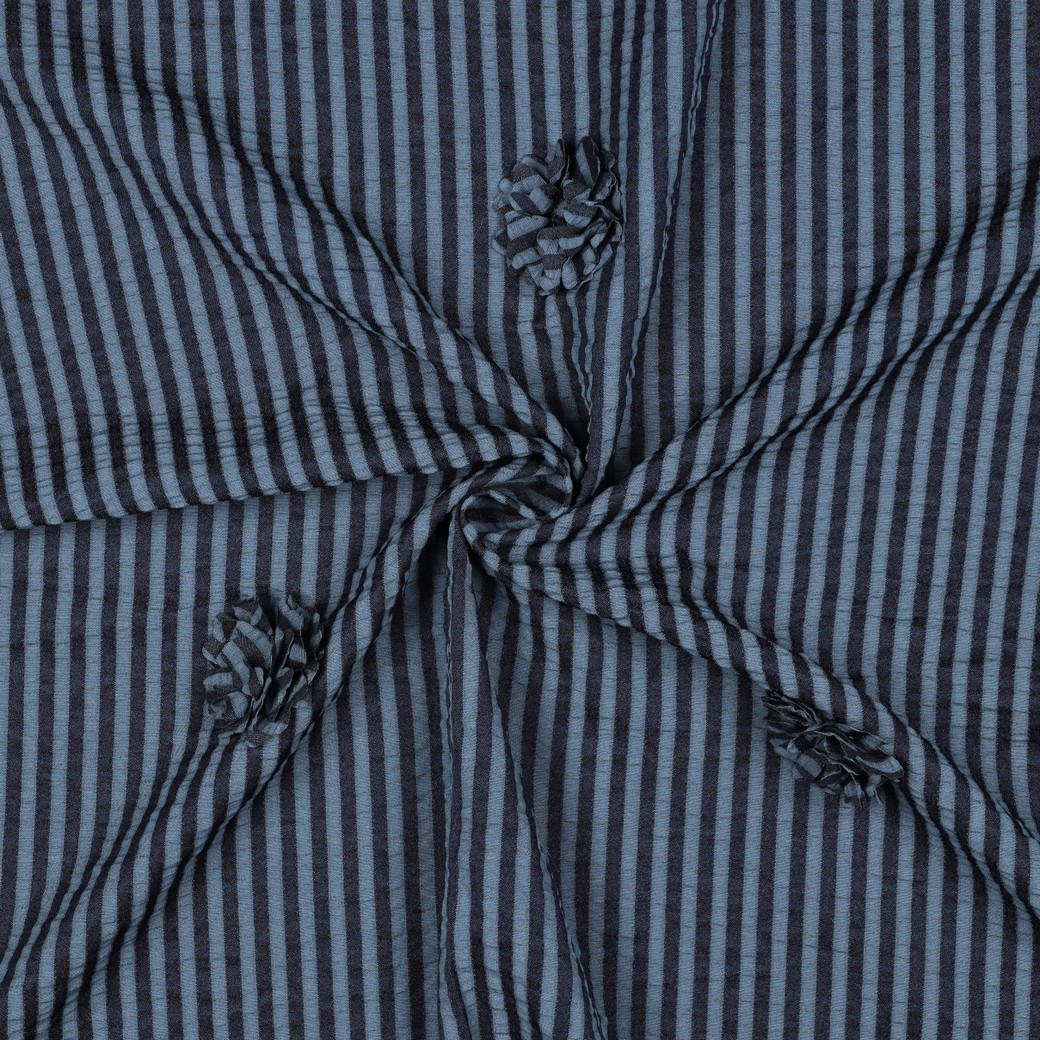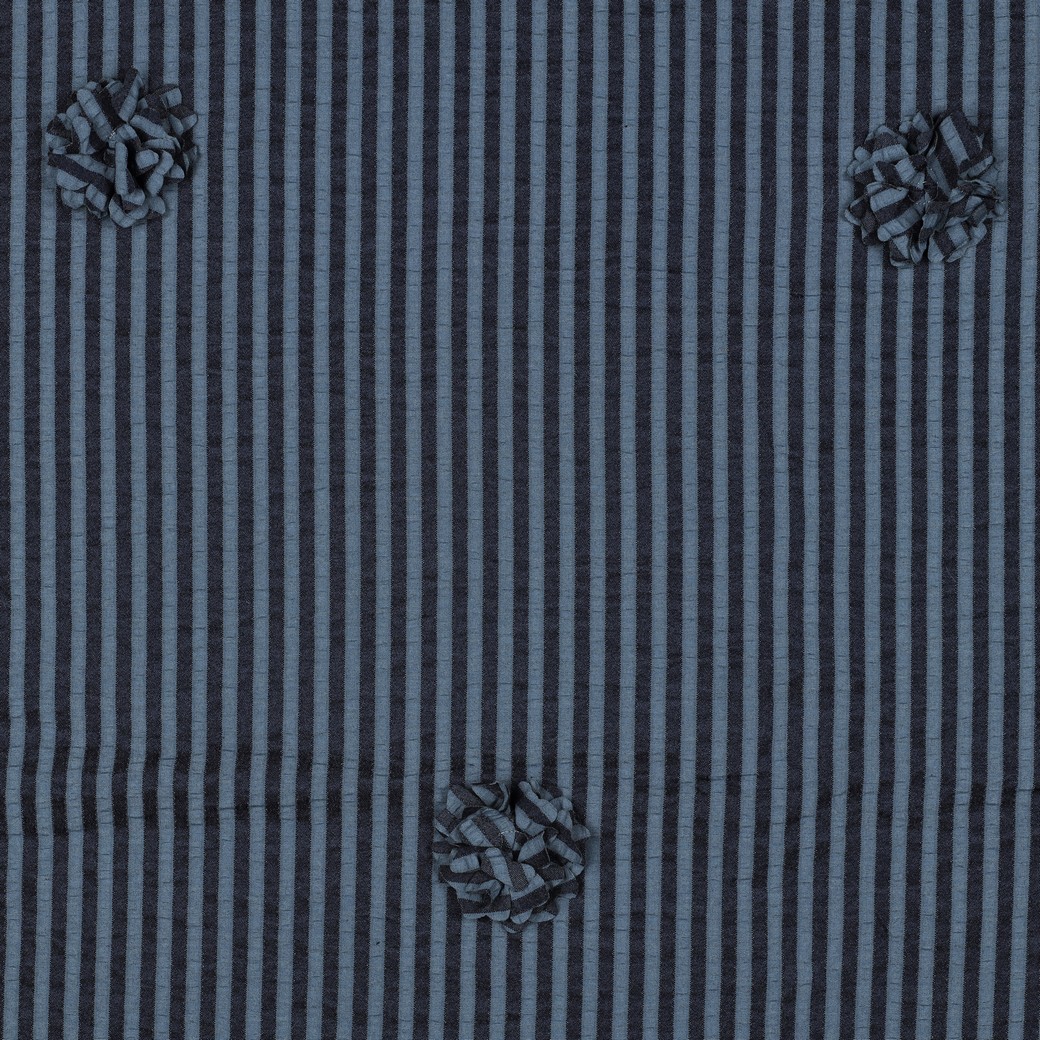 Dieses hochwertige Viskosegemisch überzeugt mit seinem weichen, fließenden Fall und einer angenehm gecrinkelten Oberfläche. Das klassische Streifendesign wird durch eingewebte 3D-Blumen stilvoll ergänzt und verleiht dem Stoff eine besondere, moderne Optik. Angenehm kühl auf der Haut, atmungsaktiv und pflegeleicht, eignet sich der Stoff ideal für leichte, komfortable Kleidung mit einem besonderen Detail.
