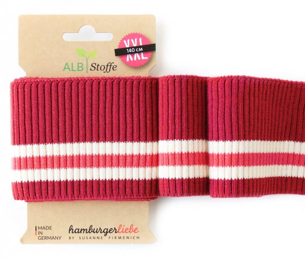 Mit den Cuff Me´s eröffnen sich unzählige neue Designmöglichkeiten und grenzenlose Kreativität. Die Qualität, der feste Anfang, die ideal farblich abgestimmten Jacquard Jerseys eröffnen Dir neue Dimensionen der Kreativität. Die Bündchen bieten tolle neue Designmöglichkeiten und verleihen deinen genähten Schätzen einen wunderschönen Look. Die Farben sind passend zu den Albstoffe Kollektionen, können aber auch sehr schön für andere Stoffe verwendet werden.