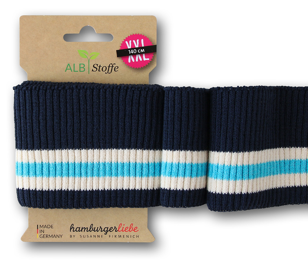 Mit den Cuff Me´s eröffnen sich unzählige neue Designmöglichkeiten und grenzenlose Kreativität. Die Qualität, der feste Anfang, die ideal farblich abgestimmten Jacquard Jerseys eröffnen Dir neue Dimensionen der Kreativität. Die Bündchen bieten tolle neue Designmöglichkeiten und verleihen deinen genähten Schätzen einen wunderschönen Look. Die Farben sind passend zu den Albstoffe Kollektionen, können aber auch sehr schön für andere Stoffe verwendet werden.