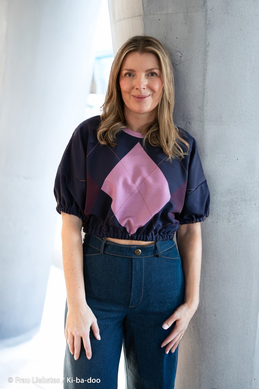 Preview: French Terry - Panel - Argyle Rauten - dunkelblau - Geoluxe by Ki-ba-doo - Swafing