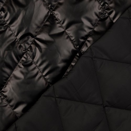 Ein mitteldick wattierter, metallisch schimmernder Jackenstepper mit klassischer Rautensteppung. Die Rückseite ist schlicht schwarz. Dadurch kann der Stoff auch ohne Fütterung vernäht werden. Er eignet sich hervorragend zum Nähen von Jacken, Mänteln und Westen für den Übergang.