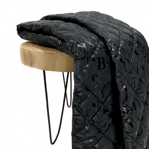 Aussergewöhnlicher, dünner Jackenstepper in schwarz mit edel changierendem, leicht glänzendem Buchstabendruck. Die Rückseite ist schlicht matt. Der Stoff eignet sich hervorragend zum Nähen von Jacken, Mänteln und Westen für den Übergang. Auch zum Nähen von Taschen ist dieser Stoff gut geeignet.