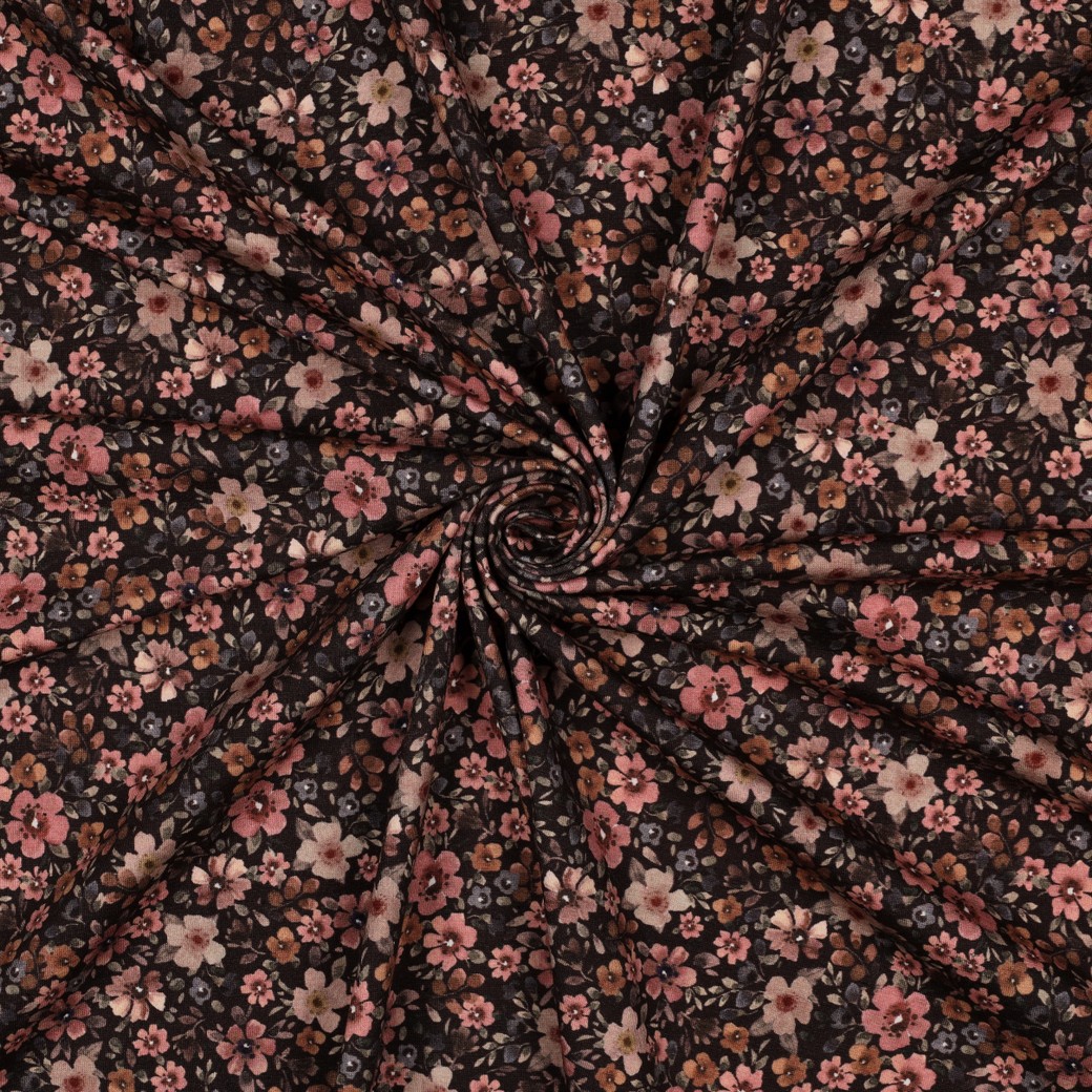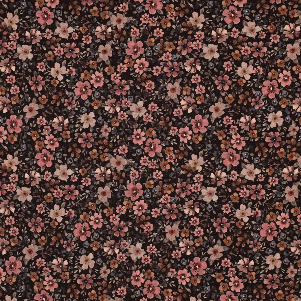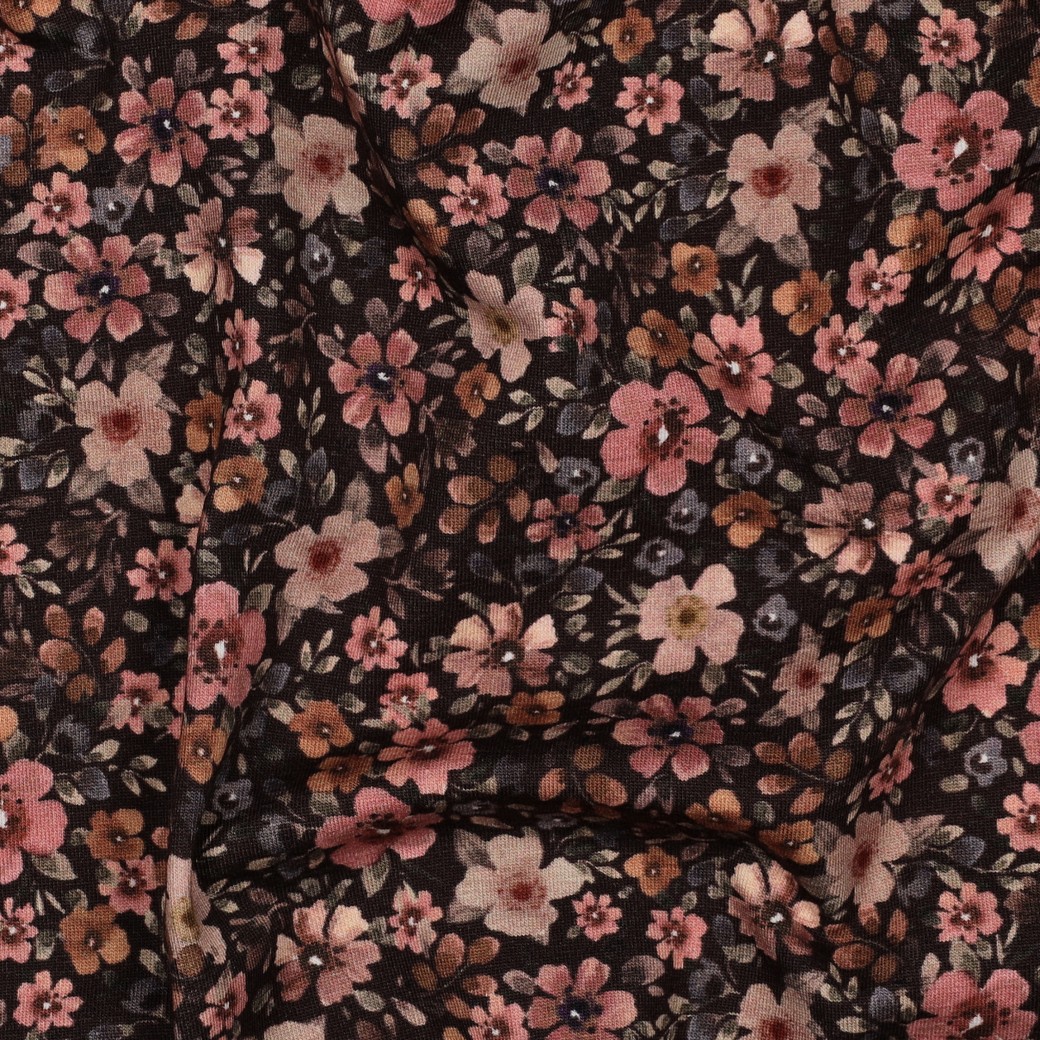 Jersey - Big Fiora Flowers - nude/khaki/rost/braun
