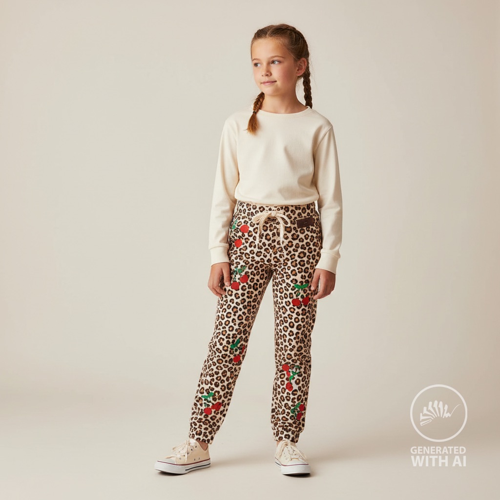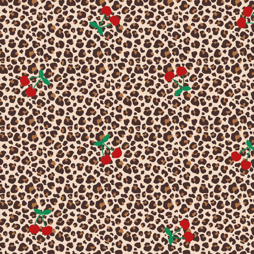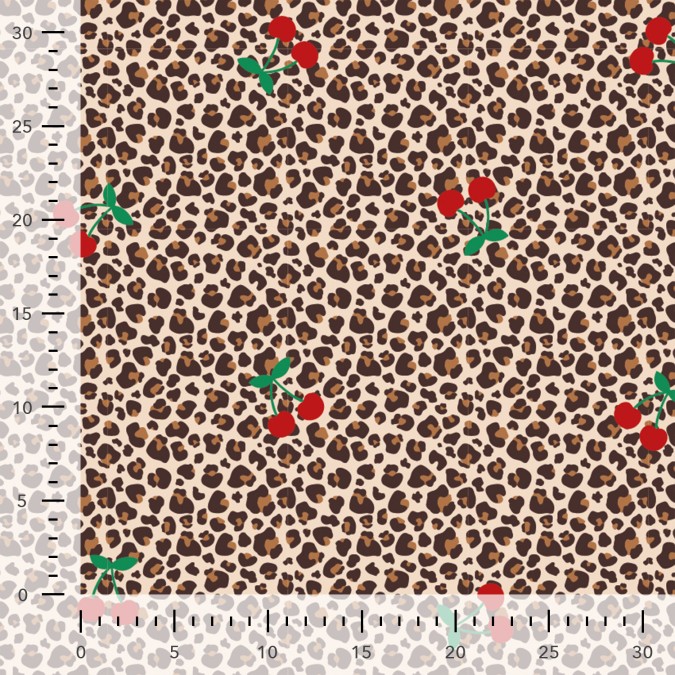 Trendiger Jersey mit angesagtem Leo-Print und verspielten Kirschen als besonderem Highlight. Die Kombination aus klassischem Animal-Muster und fruchtigen Details verleiht dem Stoff einen modernen, frechen Look mit Retro-Charme.
