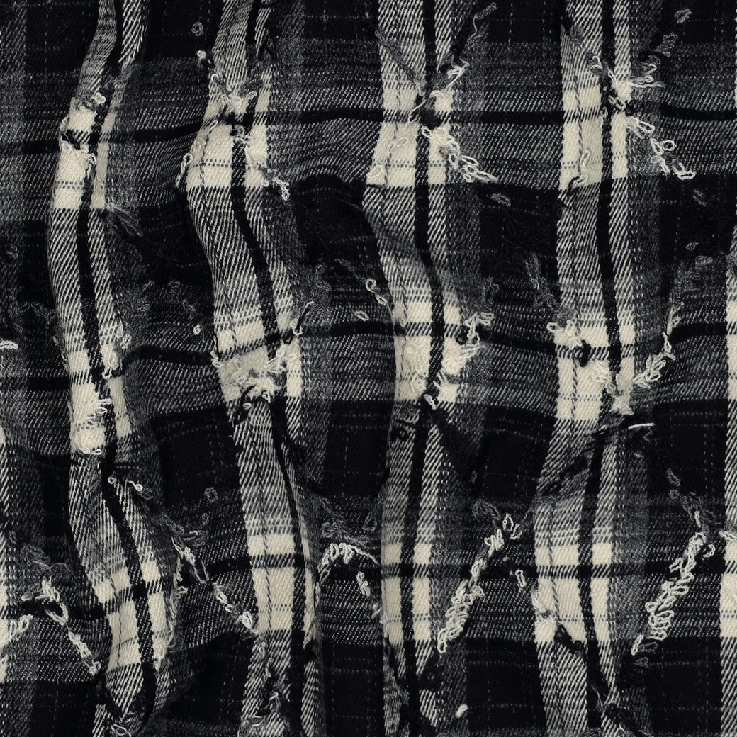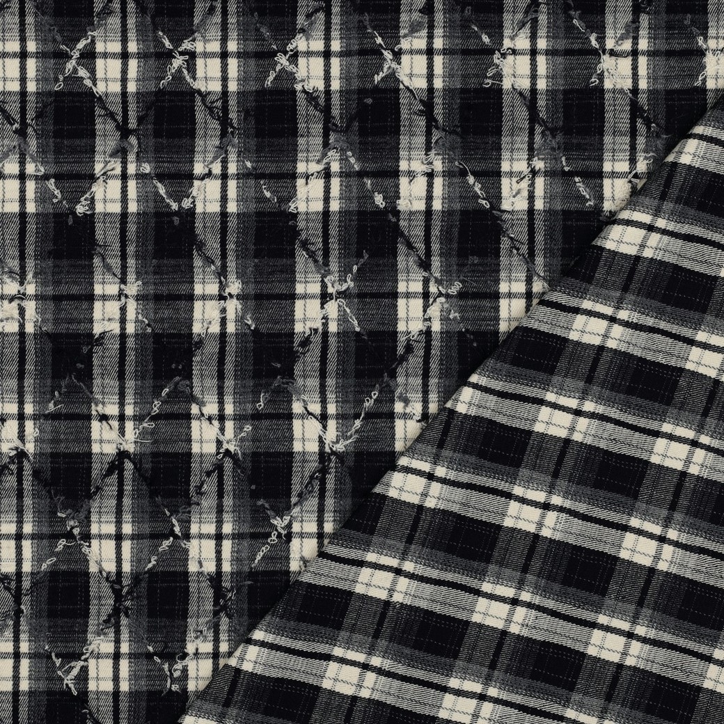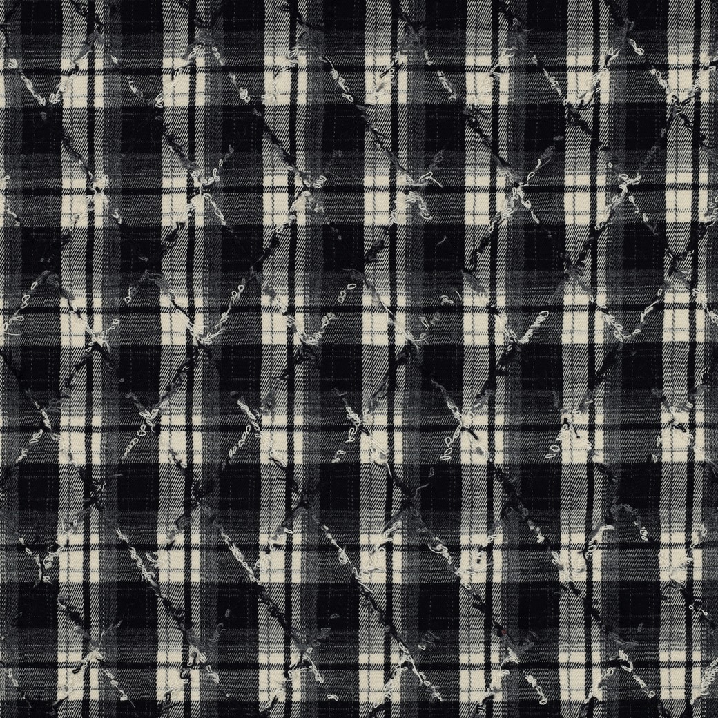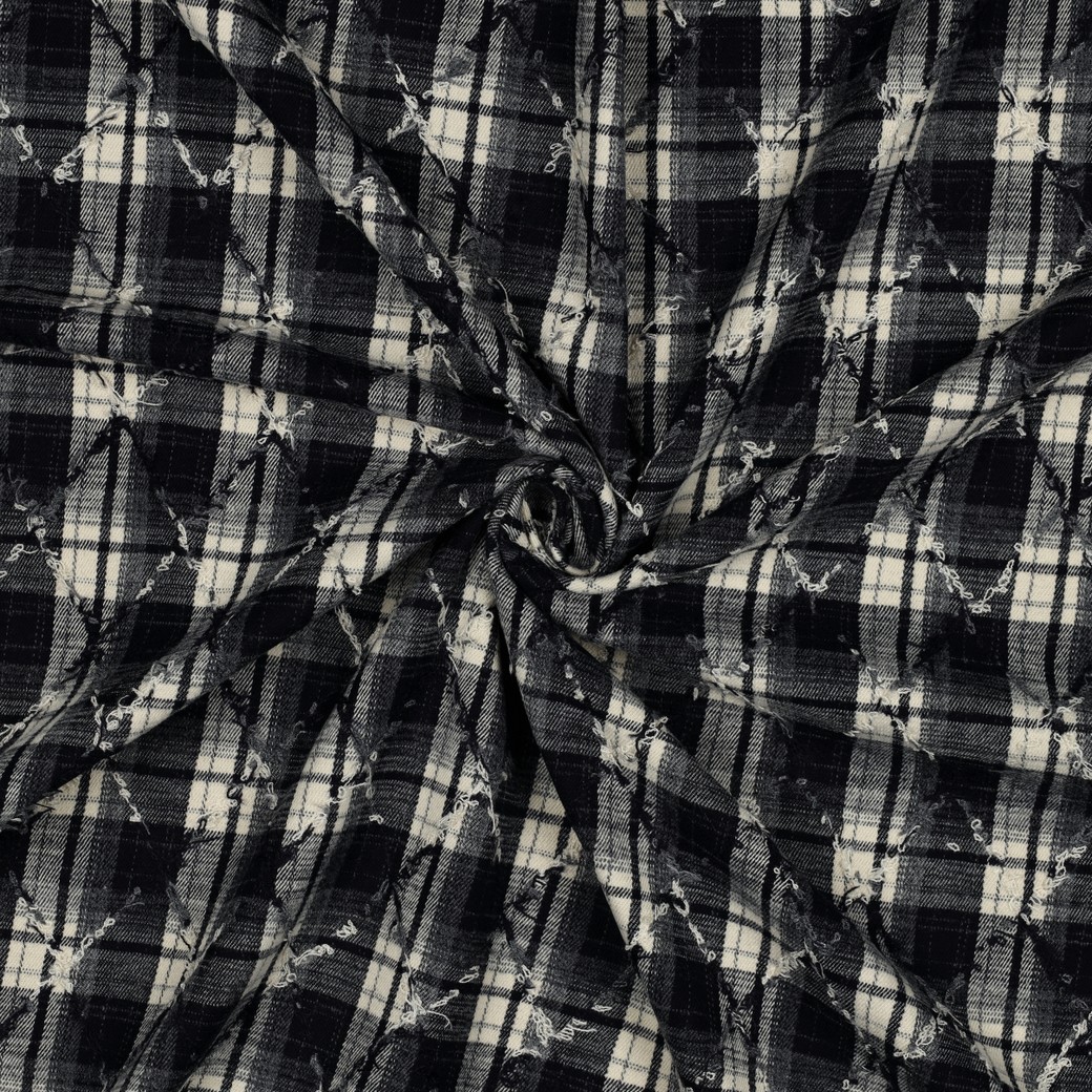 Dieser hochwertige Denim Twill überzeugt durch seine robuste, strapazierfähige Qualität und eine angenehm griffige Haptik. Das klassische Karomuster wird durch dezente Fransen-Details stilvoll aufgelockert und verleiht dem Stoff eine moderne, leicht lässige Optik.