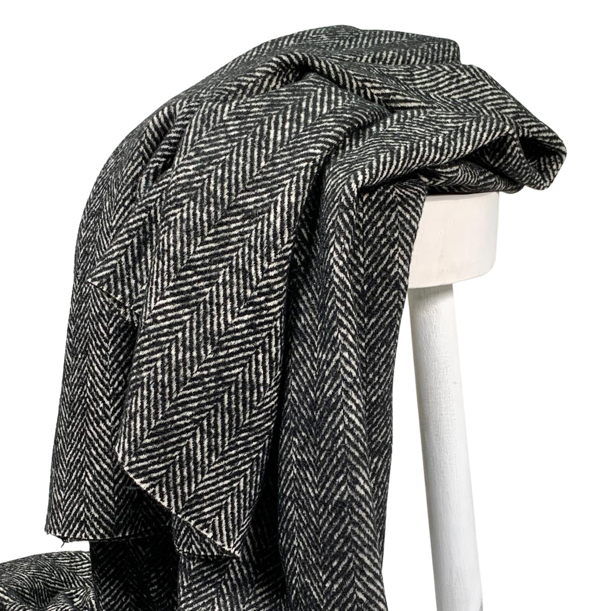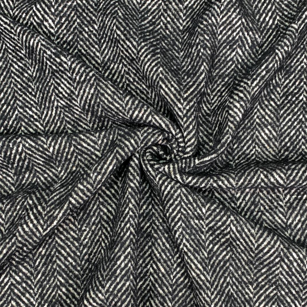 Mantelstoff - Fischgrat Tweed - schwarz