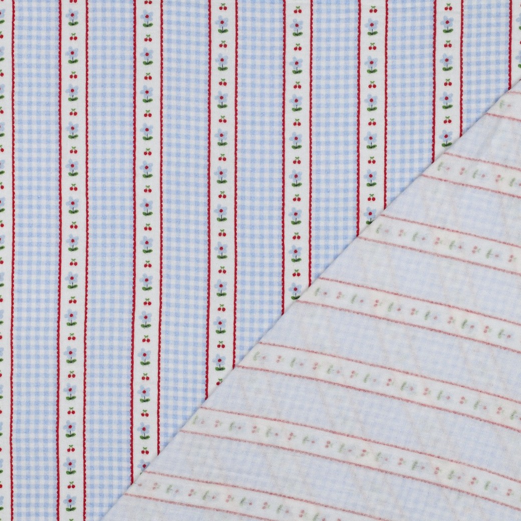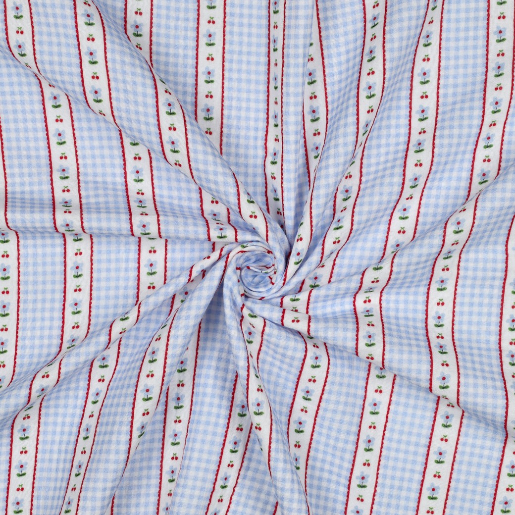 Dieser hochwertige Musselin überzeugt mit seiner weichen, luftigen Qualität und der typischen, leicht gekreppten Struktur. Die Kombination aus zartem Karomuster und liebevoll gestalteten Streifen mit floralen Details verleiht dem Stoff eine verspielte, charmante Optik. Angenehm auf der Haut, atmungsaktiv und pflegeleicht, eignet sich der Stoff ideal für leichte, bequeme Kleidung mit besonderem Charakter.