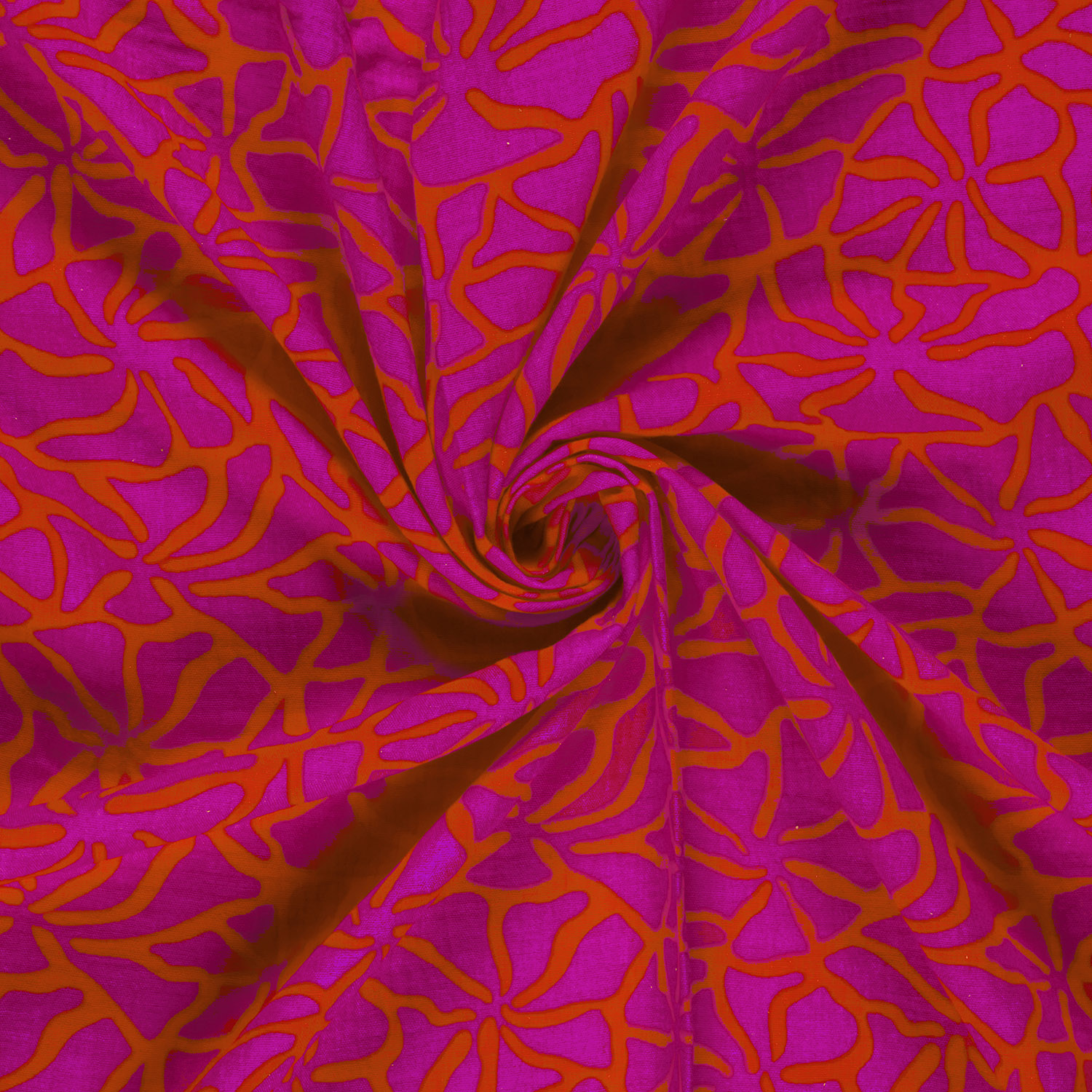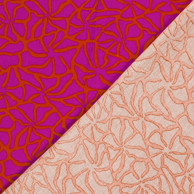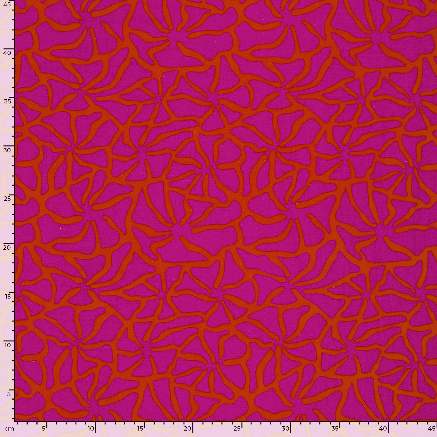 Musselin - Dorina Flowers - rotorange/fuchsia