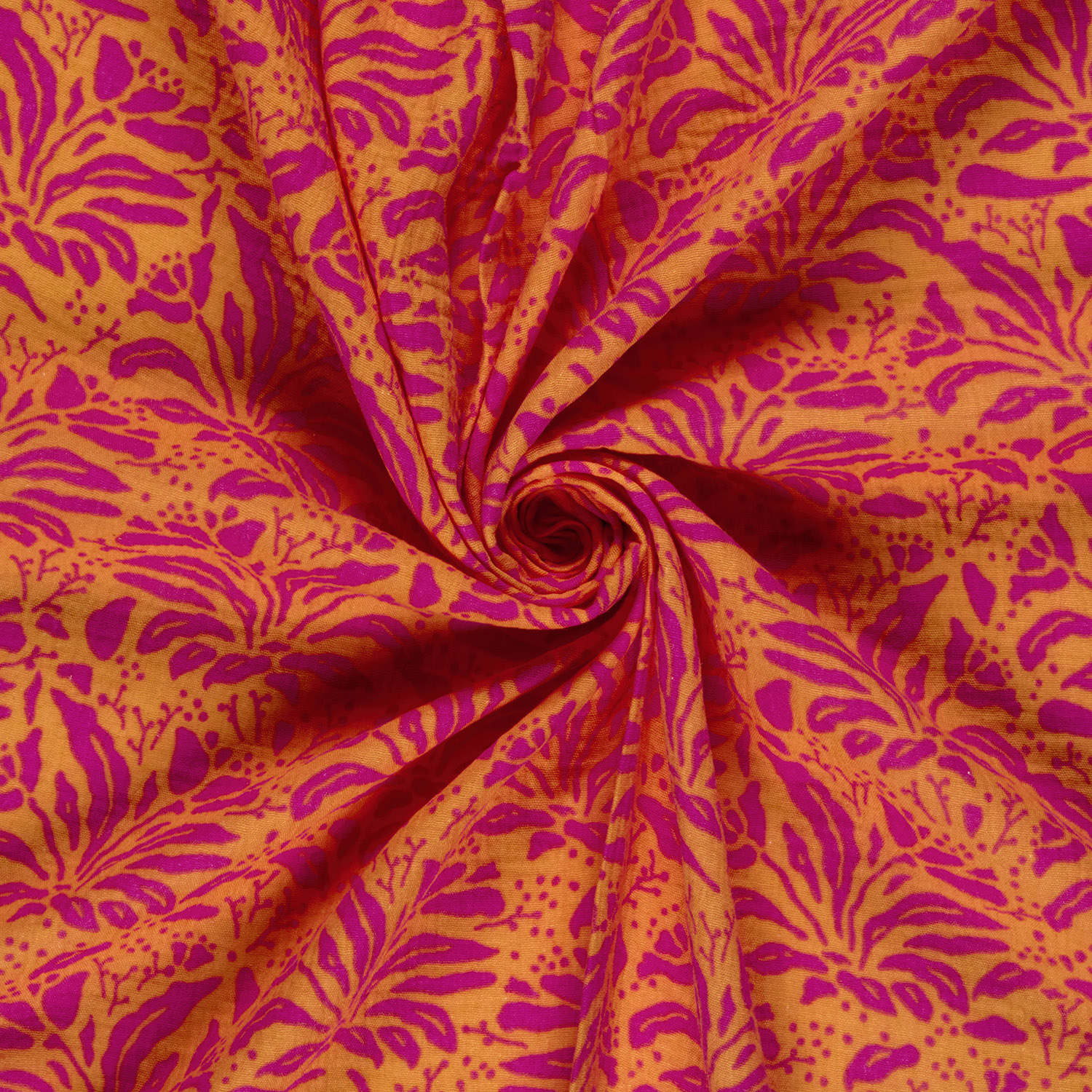 Dieser Musselin begeistert mit einem lebendigen, sommerlichen Allover-Design in kräftigen Pink- und Orangetönen. Das verspielte, tropisch angehauchte Muster erinnert an florale und organische Formen und sorgt für gute Laune bei jedem Nähprojekt. Die typische Musselin-Qualität ist wunderbar leicht, weich und leicht strukturiert. Der Stoff ist atmungsaktiv, angenehm auf der Haut und erhält nach dem Waschen seinen charakteristischen, leicht gekreppten Look.