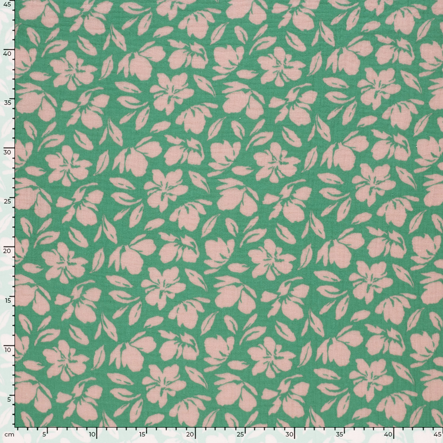 Mobile Preview: Musselin - Kanta Flowers - grün/nude