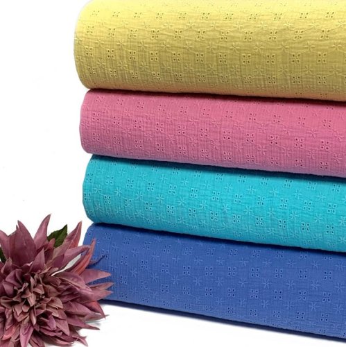Ein wunderschöner weicher Musselin Stoff mit Lochstickerei. Eignet sich hervorragend für Schals, Tücher, Sommerkleidung oder auch als leichtes Plaid und uvm.