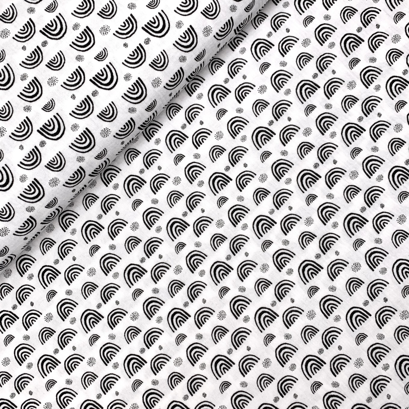 Musselin - Rainbow & Dots - ecru