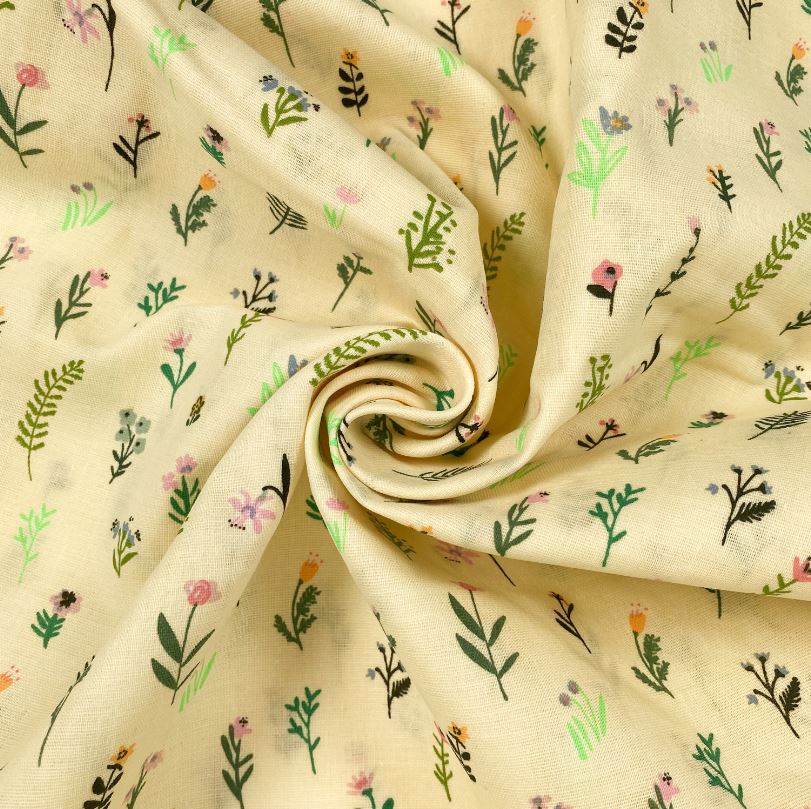 Die Stoffkollektion „Bunny Hop“ präsentiert neben Blumenmotiven und Karomustern auch niedliche Häschendesigns. Der glatte Musselin-Stoff besteht aus 100% Baumwolle. Die Baumwollfasern werden zu feinem Kammgarn versponnen und zu einem leinwandbindigen, doppellagigen Gewebe mit glatter Oberfläche verarbeitet. Musselin ist vielseitig einsetzbar und eignet sich sowohl für das Nähen von Kleidung als auch für Home-Accessoires und filigrane Deko.