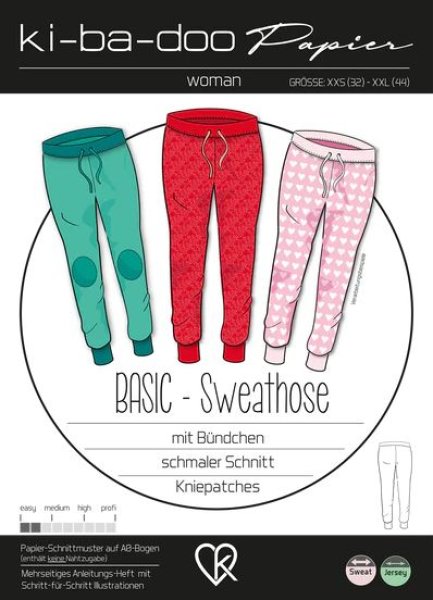 Schnittmuster ki-ba-doo Damen schmale Basic Sweat Hose in der Größe 32-44