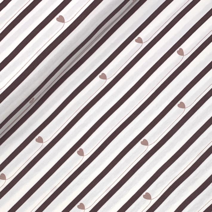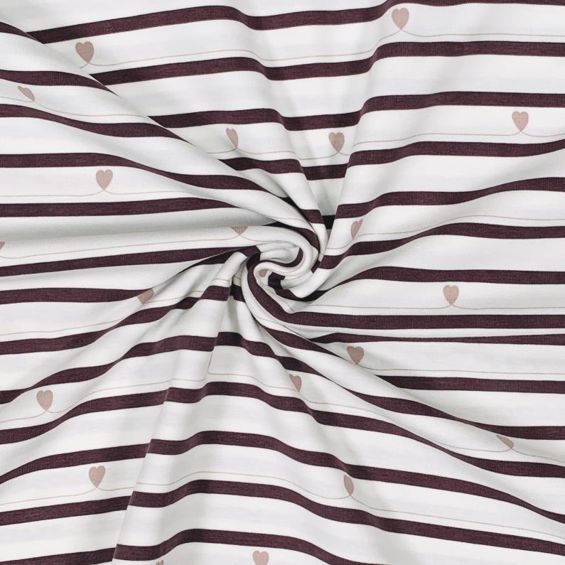 Süßer Streifenjersey mit kleinen Herzen. Ideal geeignet zum Vernähen für Shirts, Kleider, Leggings, Shorts und vieles mehr.