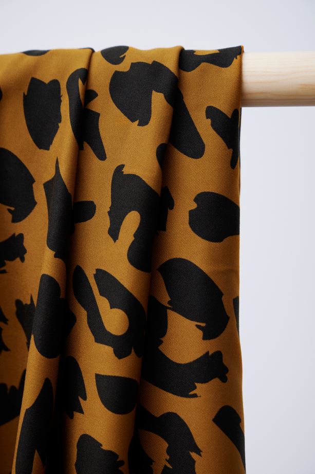 Dieser ECOVERO™ Viskose-Twill mit modernem, großflächigem Leopardenmuster ist sehr vielseitig und eignet sich sowohl für Oberteile, Kleider als auch für leichte Unterteile. Es ist ein klassisches Twill-Gewebe mit einem ziemlich schweren und weichen fließenden Fall. Dieser Stoff ist vollständig blickdicht und fühlt sich weich und halbmatt an.