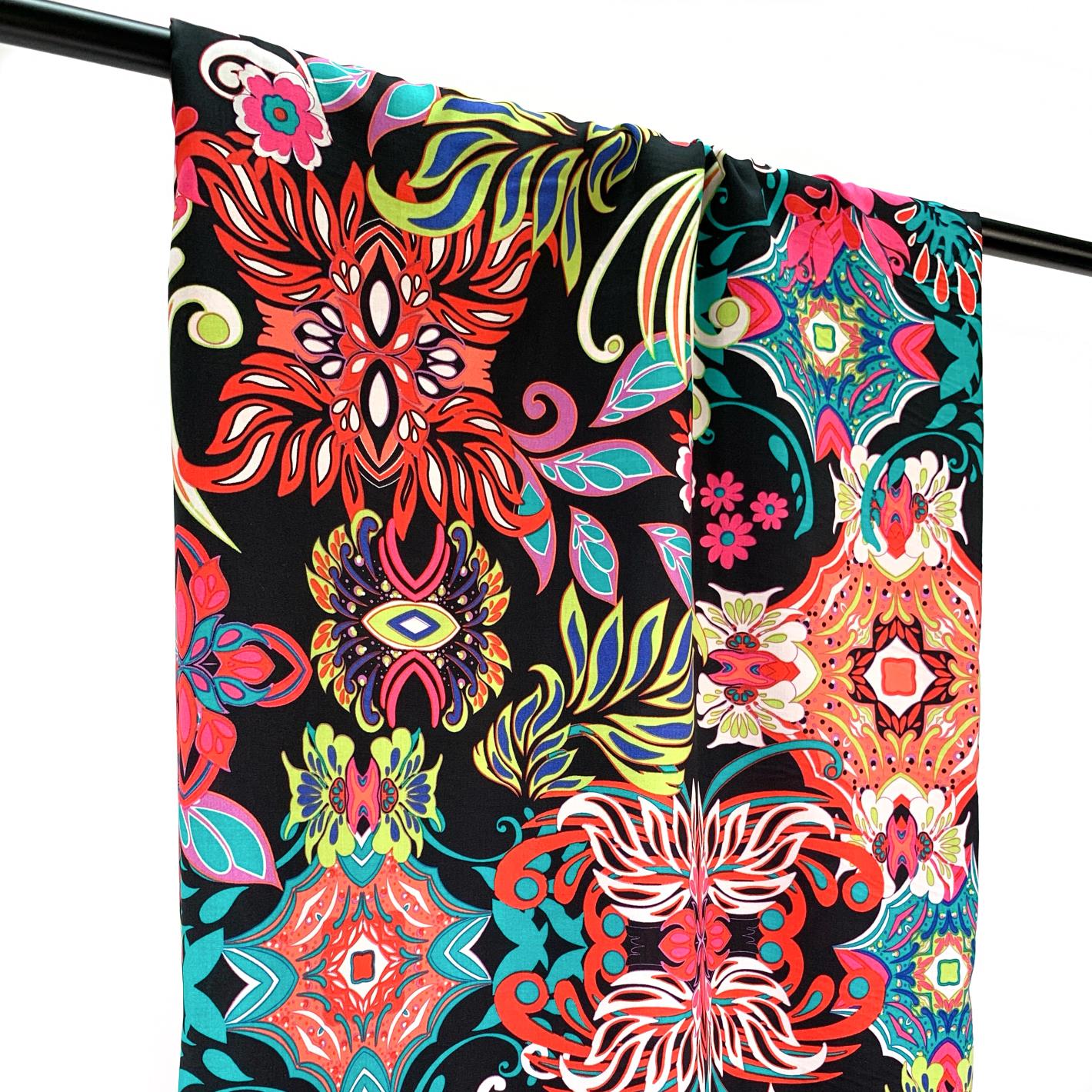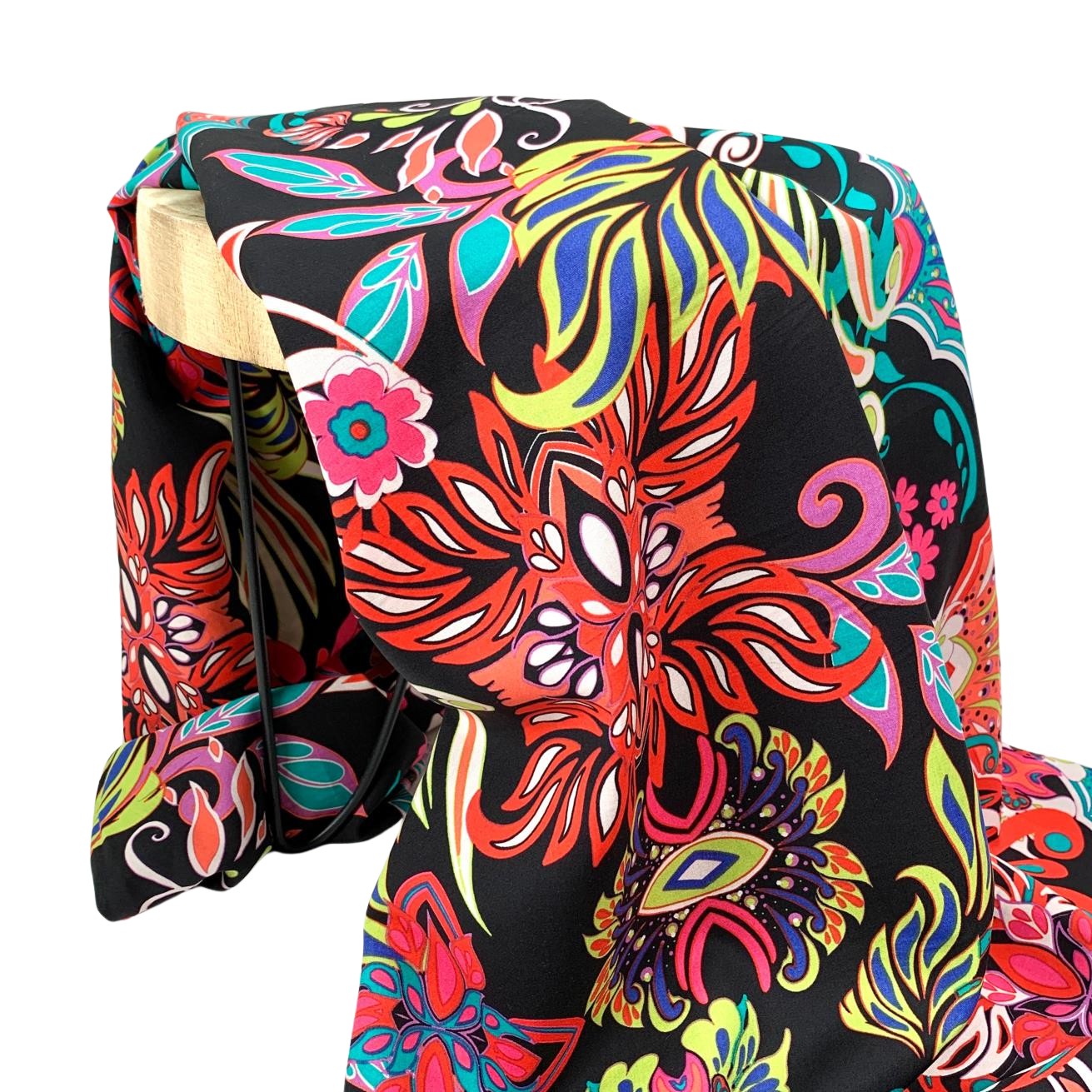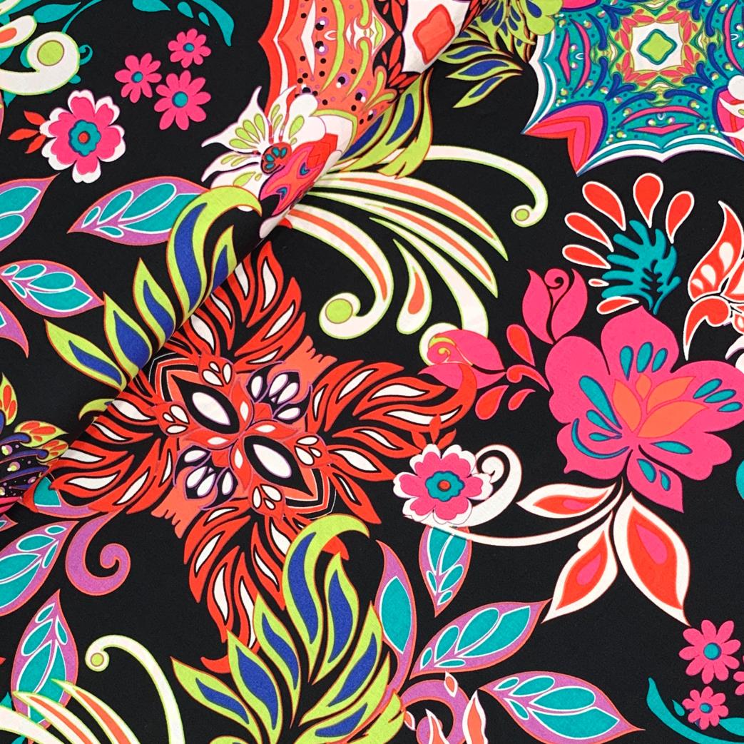 Eine wunderschöne, leichte, glatte Webware aus Baumwoll Viskose Gemisch. Der zarte Stoff mit dem floralem print ist perfekt für Blusen, Kleider oder Röcke.