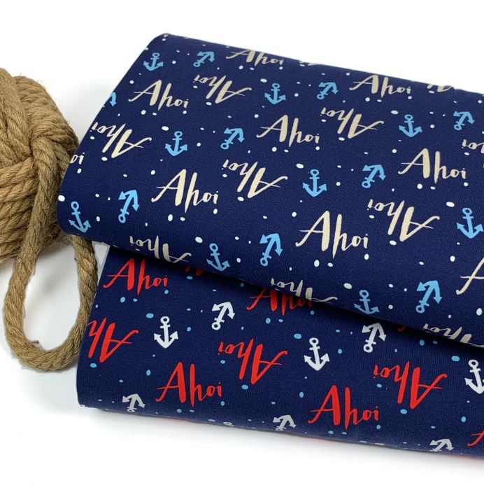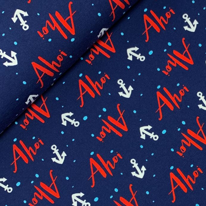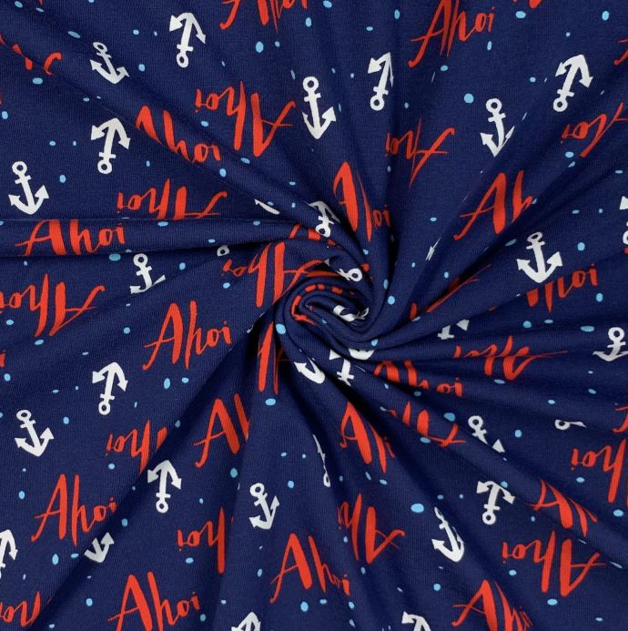 Ein wunderschöner maritimer Jersey mit Ankern & co. bedruckt. Ideal zum Vernähen für Shirts, Leggings, Kleider etc.