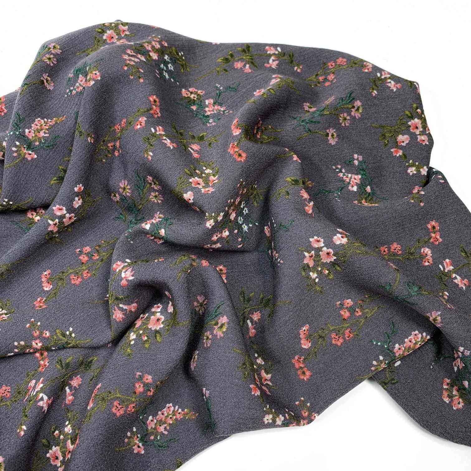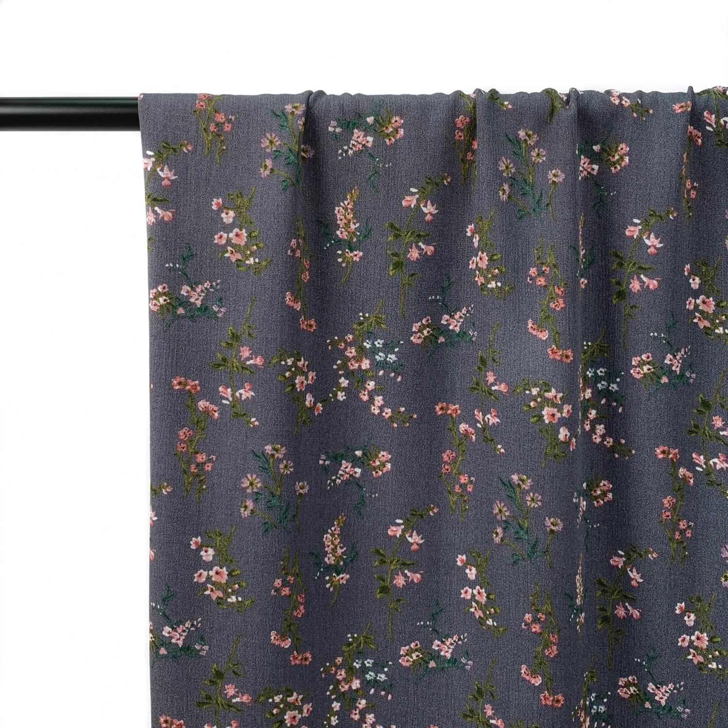 Ein wunderschöner leichter Viskose Crepe Stoff mit zartem Blumenmuster. Ideal für Kleider, Röcke oder auch für Blusen.