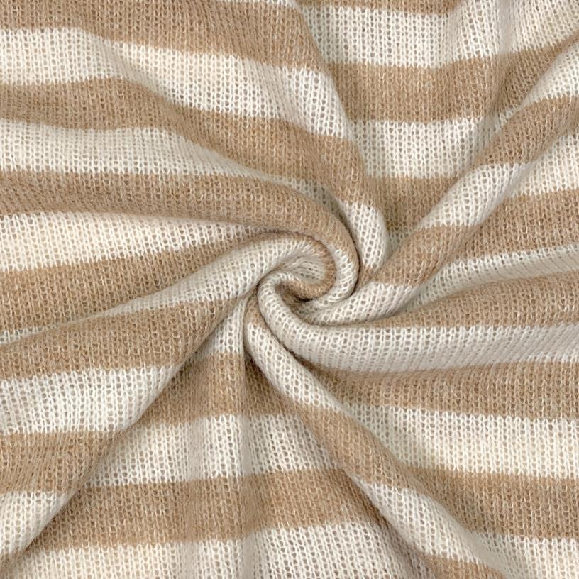 Wunderschöner leichter "glatt rechts" Strick mit Wollanteil. Das zeitlose Ringeldesign gibt es in vier freundlichen Farbkombinationen. Der Strick eignet sich hervorragend für leichte Strickjacken, Strickkleider, Pullover, Dreieckstücher uvm.
