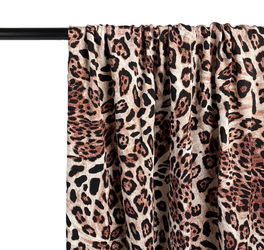 Eine wunderschöne Viskose Webware mit animalprint. Ideal für Blusen, Kleider, Röcke, Tücher, Schals, etc.