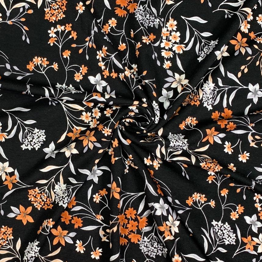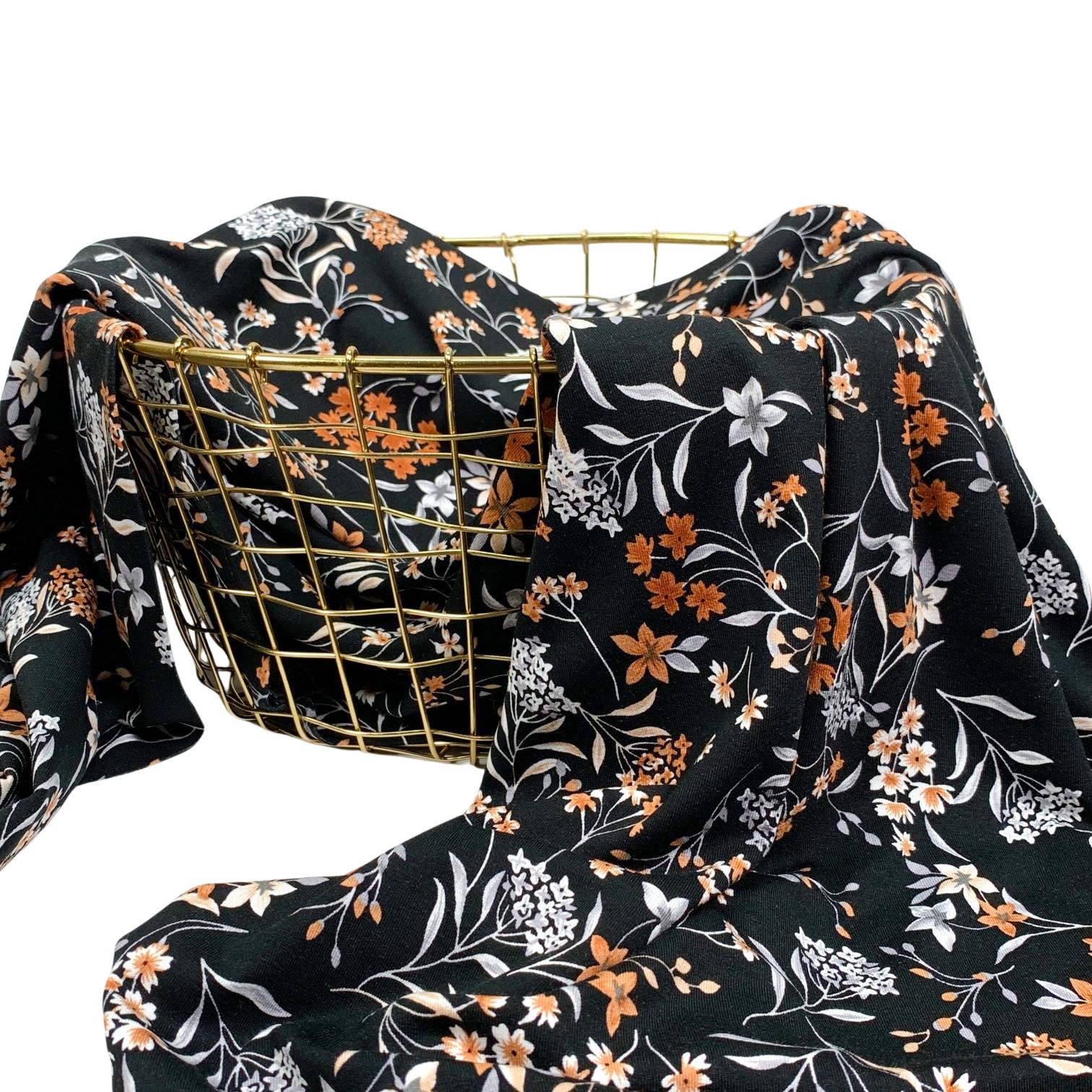 Ein wunderschöner, weicher und anschmiegsamer Viskosejersey mit stilvollem Blumenmuster. Ideal für Kleider, Shirts, Tops oder Röcke.