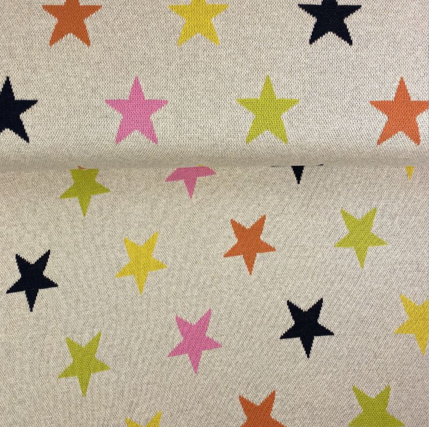 RESTSTÜCK 0,90m !!! - Strickstoff Jacquard - beige Sterne