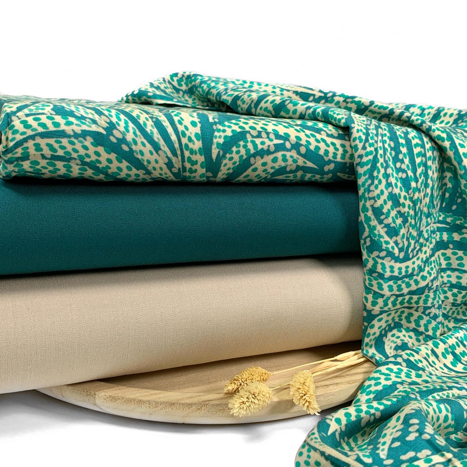 Diese Viskose Webware besteht aus ECOVERO ™ Viskosefasern, einer nachhaltig zertifizierten Viskosefaser. Er besteht aus Zellstoff aus Holz, der nur aus zertifizierten und kontrollierten Holzquellen stammt. Die Herstellung von ECOVERO ™ Viskose erfordert im Vergleich zur regulären Viskoseproduktion nur die Hälfte des Wassers, und der CO2-Ausstoß und die Verwendung fossiler Ressourcen halbieren sich im Vergleich zur herkömmlichen Viskoseproduktion.