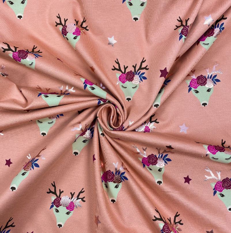 RESTSTÜCK 1,30cm !!! - Jersey - Deers & Stars - altrosa/gold metallic