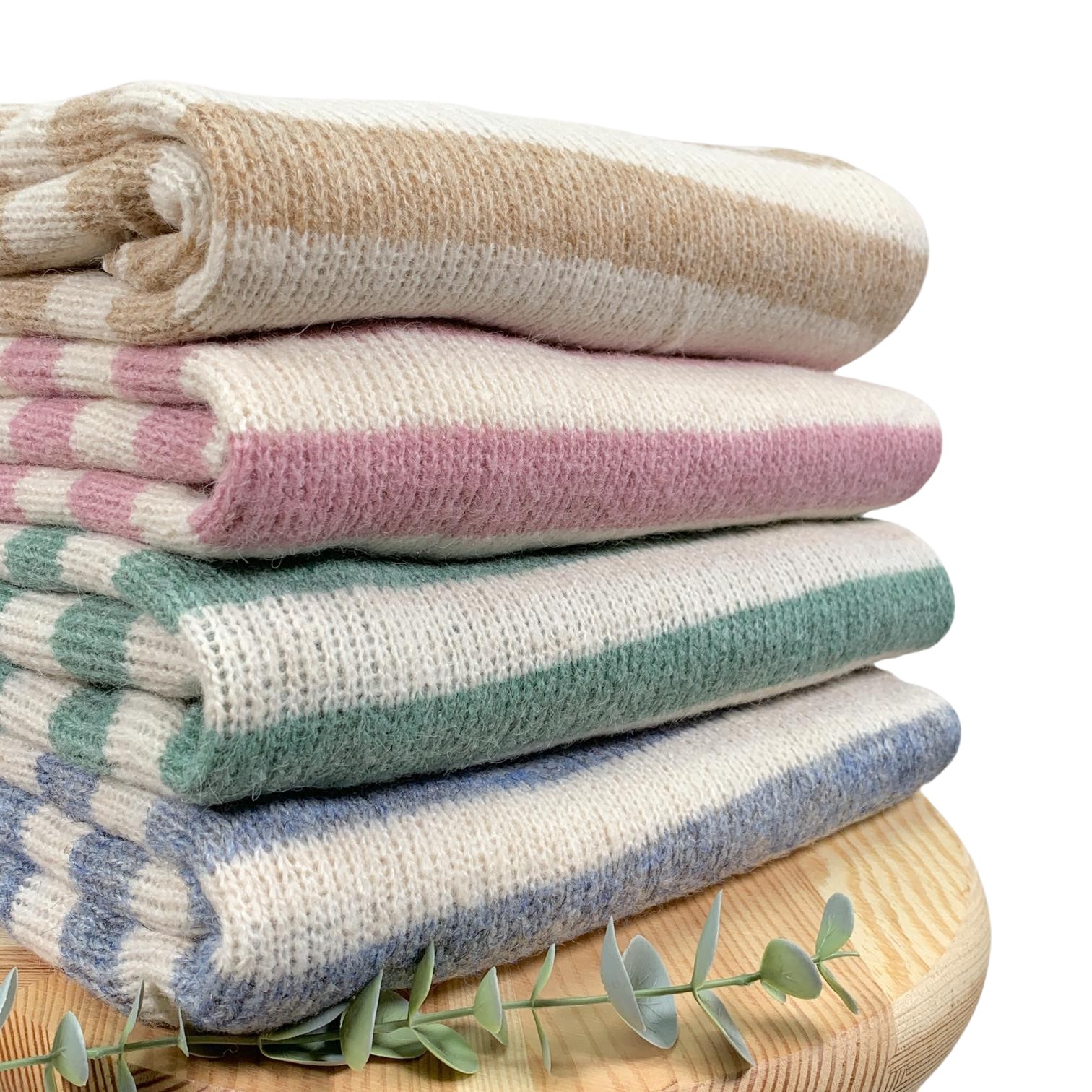 Mobile Preview: RESTSTÜCK 1,30m !!! - Woll Strick - Ringel - jeansblau/natur