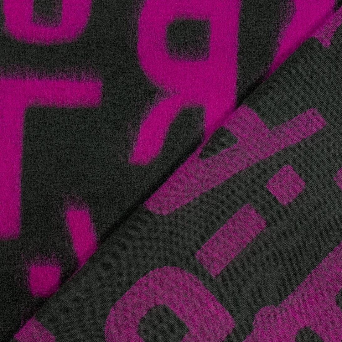 Ein wunderschöner, hochwertiger Strick Mantelstoff mit goßen Buchstaben. Kuschelig weich, schön dick und wärmend durch den Wollanteil. Ideal zum Nähen von weichen Jacken und Mänteln oder auch dickere Strickmäntel und Cardigans.
