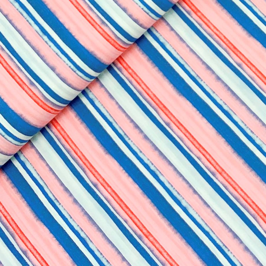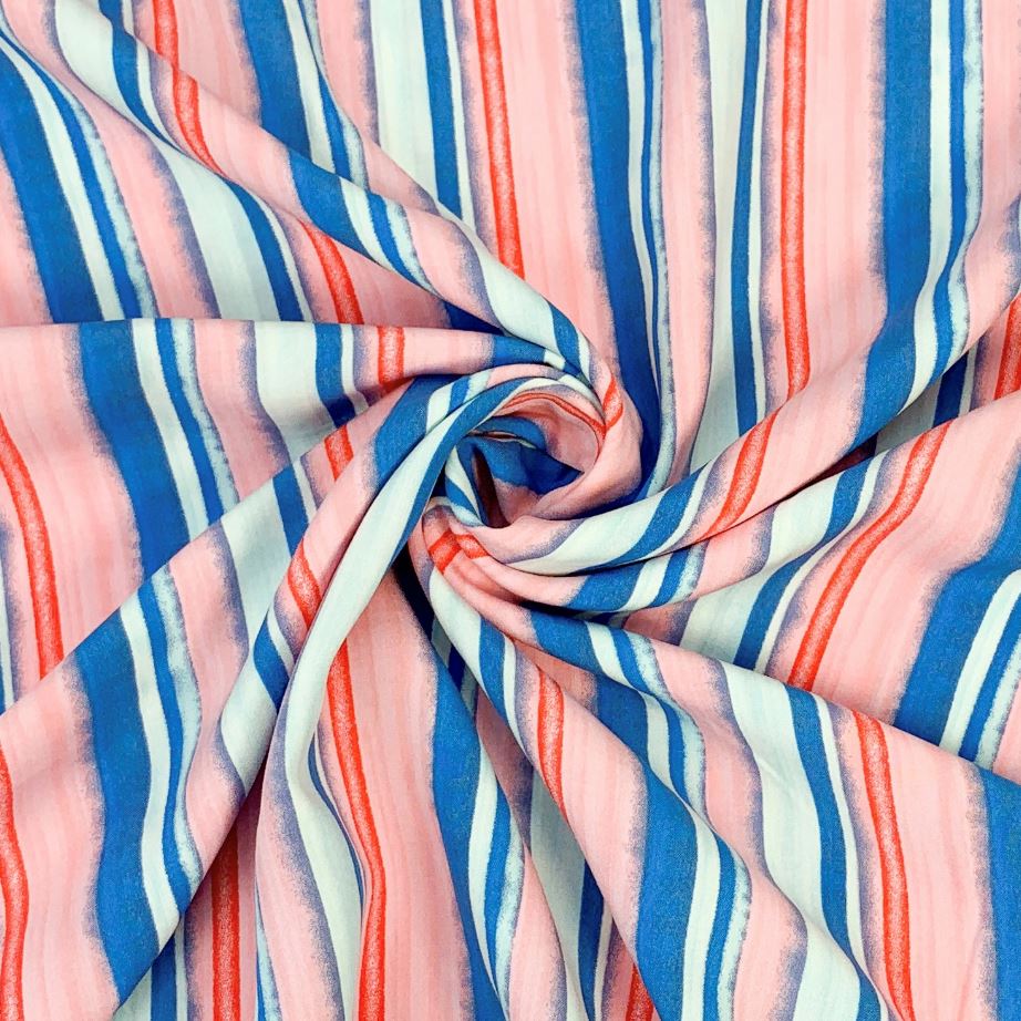 Ein wunderschöner frühlingshafter gestreifter Viskose Stoff. Ideal für Kleider, Röcke, Tücher und Blusen.