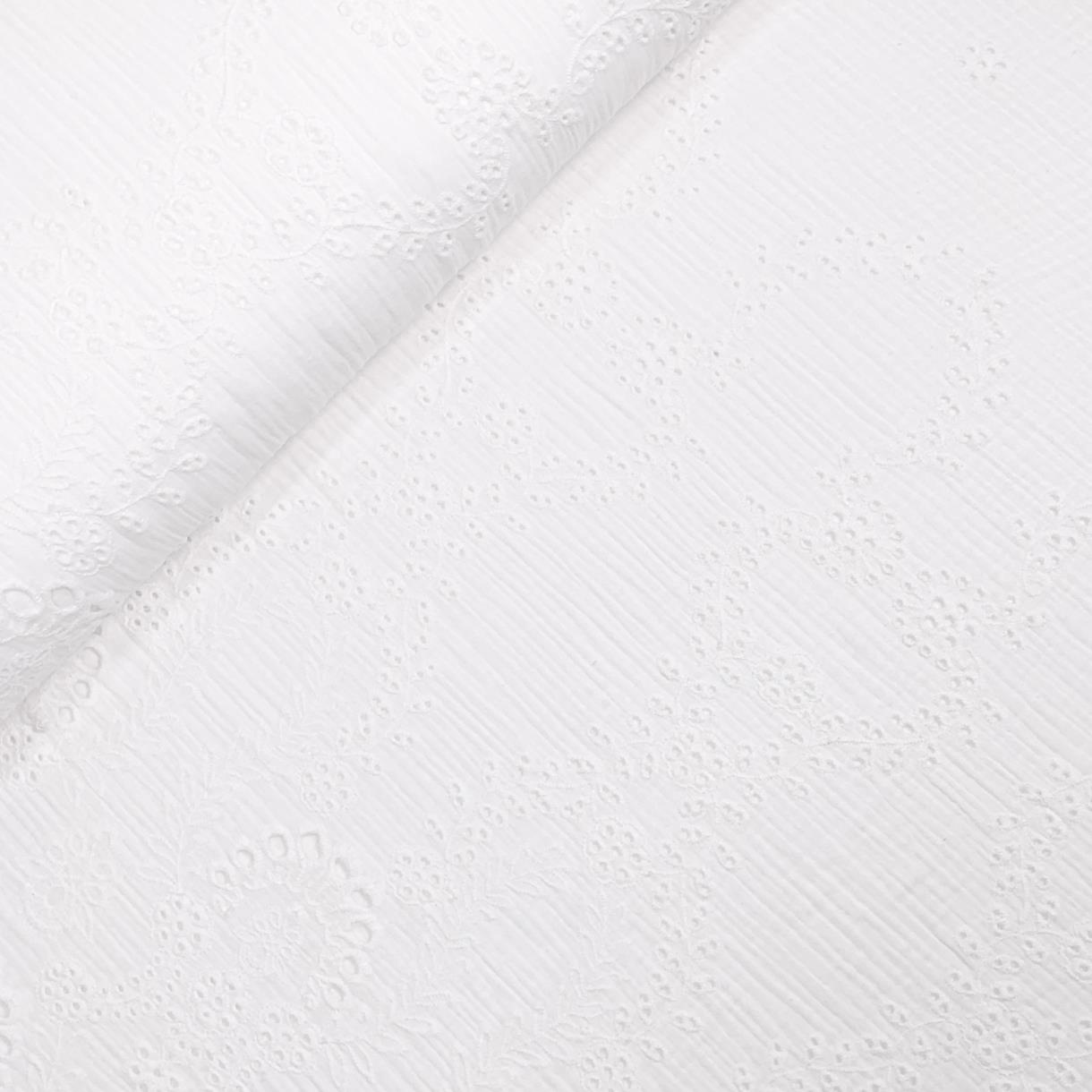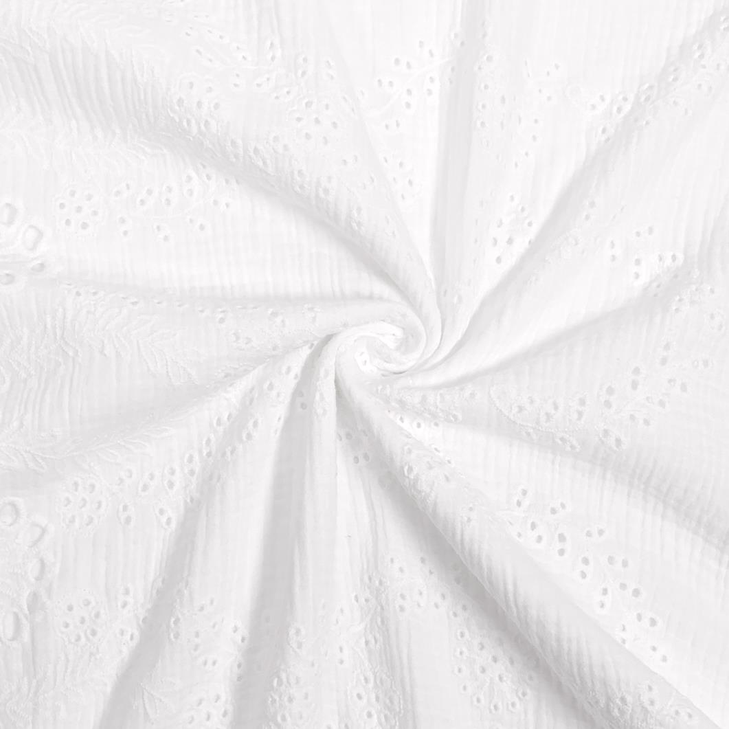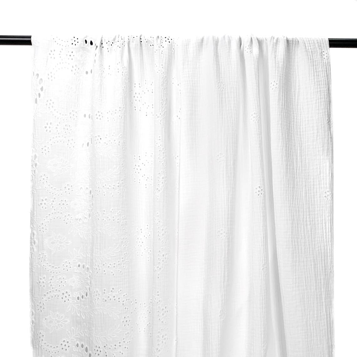 Mobile Preview: RESTSTÜCK 50cm !!! - Musselin mit Bordüre - Lochstickerei - Reena - weiß