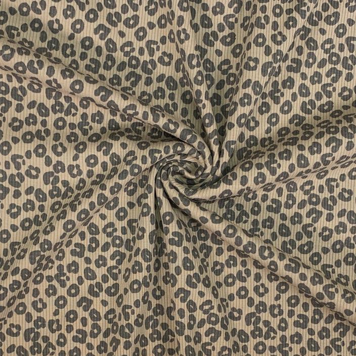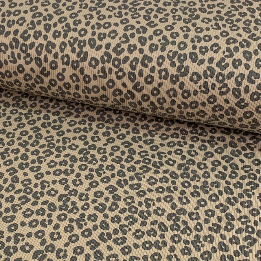 Sehr süßer, feingerippter Jersey bedruckt mit kleinem Leopardenmuster in anthrazit. Schön weich und stretchig. Vielseitig einsetztbar z.B. für Tops, Shirts, Bodies, Kleider und vieles mehr.