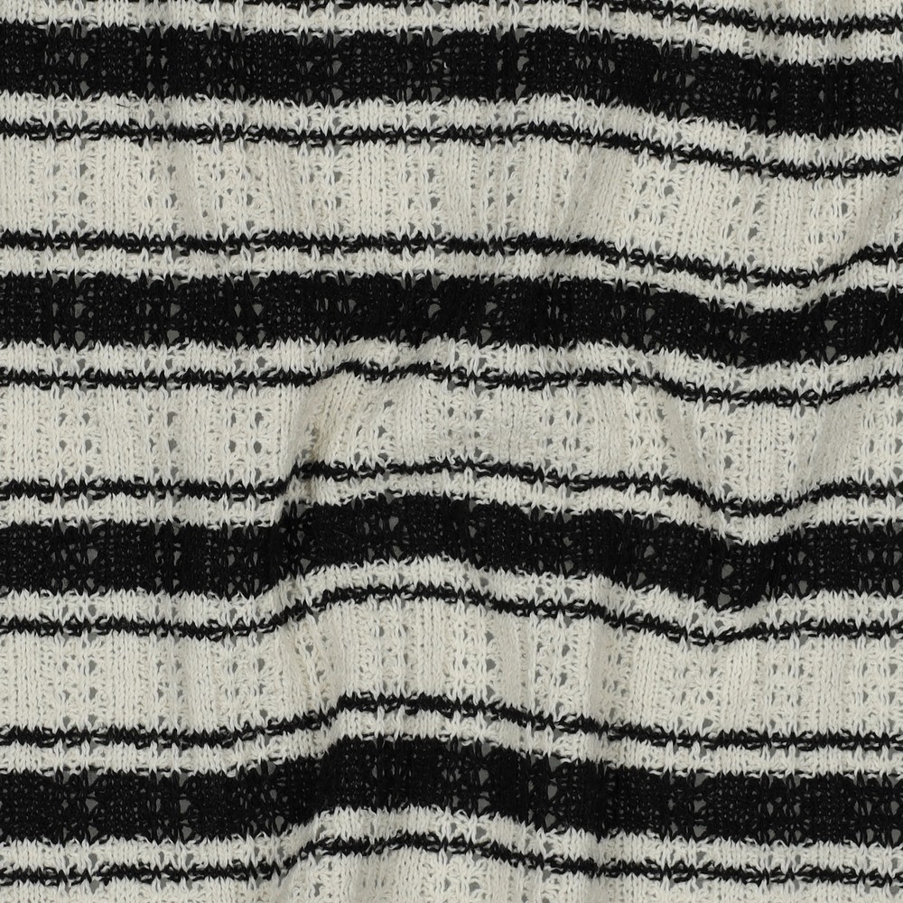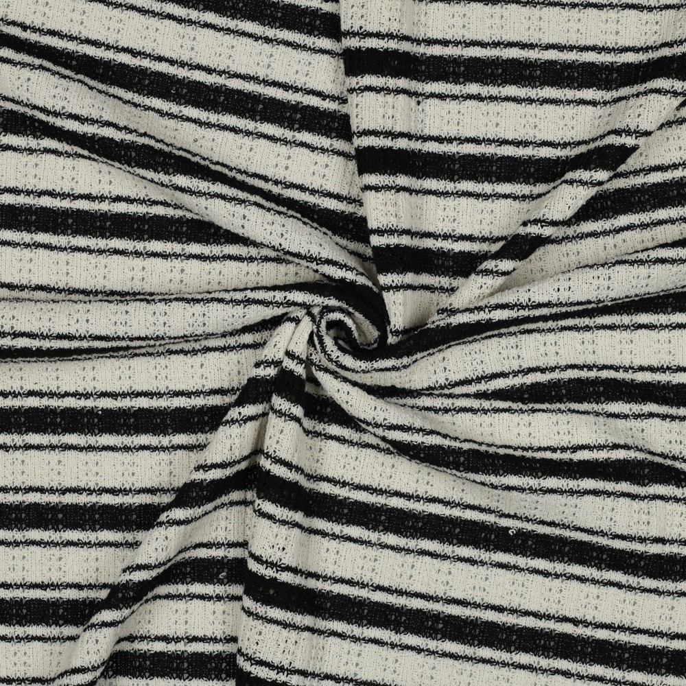 Dieser hochwertige Sommerstrick überzeugt durch seine leichte, angenehm weiche Qualität und ein klassisches Streifendesign mit moderner Ausstrahlung. Die feine Strickstruktur sorgt für eine natürliche Elastizität und einen besonders angenehmen Tragekomfort – ideal für luftige Kleidungsstücke in der warmen Jahreszeit.