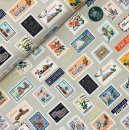 Baumwolle - Bon Voyage - Postage Stamps - flax - metallic - by Rifle Paper Co.
