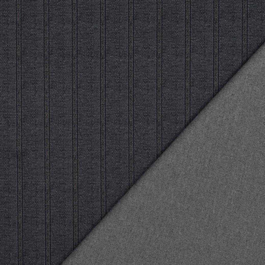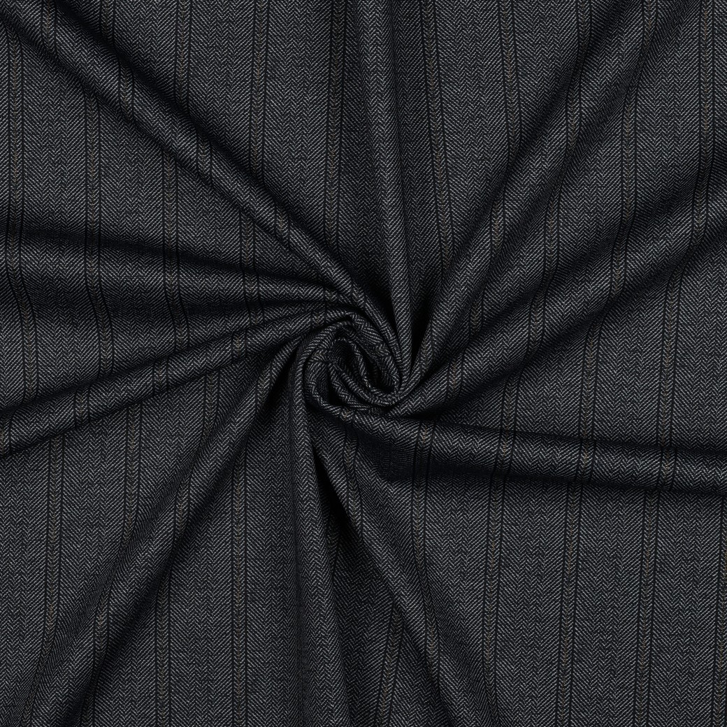 Dieser hochwertige Viskose Punta Jersey überzeugt durch seine edle Optik und seinen besonders angenehmen Tragekomfort. Der dunkle Grundton wird durch feine, vertikale Nadelstreifen ergänzt und verleiht dem Stoff einen klassischen, stilvollen Look. Die dezente Struktur sorgt für eine elegante Oberfläche und macht den Stoff ideal für moderne und zeitlose Kleidungsstücke. Durch den hohen Viskoseanteil fühlt sich der Stoff weich, glatt und angenehm auf der Haut an. Gleichzeitig bietet der Punta Jersey eine schöne Formstabilität sowie eine angenehme Elastizität, wodurch er sich besonders komfortabel tragen lässt und sich hervorragend verarbeiten lässt.