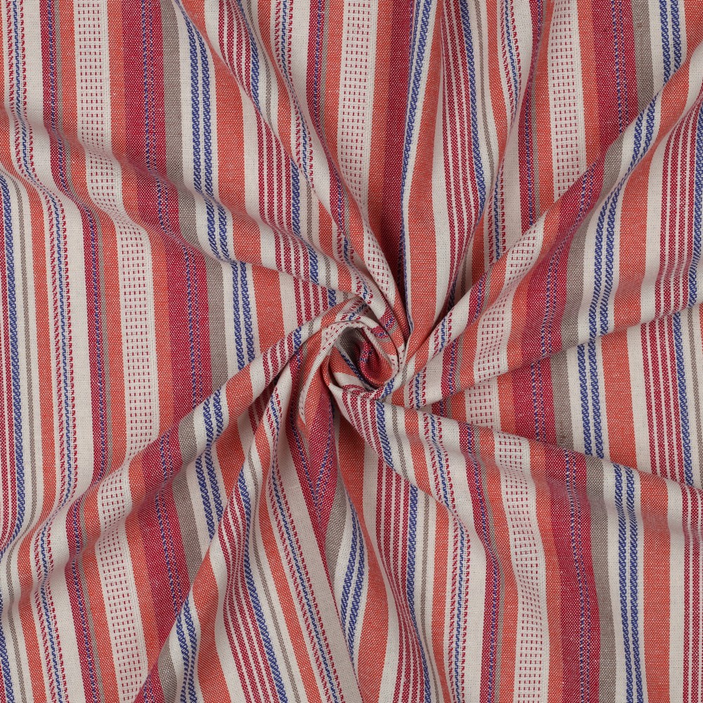 Dieser hochwertige Viskose-Leinen Stoff vereint die natürlichen Eigenschaften von Leinen mit dem weichen, fließenden Fall der Viskose. Das klassische Streifenmuster verleiht dem Stoff eine moderne, zugleich zeitlose Ausstrahlung und macht ihn zu einer vielseitigen Wahl für stilvolle Nähprojekte. Die leichte, atmungsaktive Qualität sorgt für ein angenehmes Tragegefühl und eignet sich besonders für luftige Kleidungsstücke mit natürlicher Struktur. Durch die Kombination aus Leinen und Viskose entsteht ein Stoff, der sowohl formstabil als auch weich fließend ist – ideal für bequeme und elegante Designs.