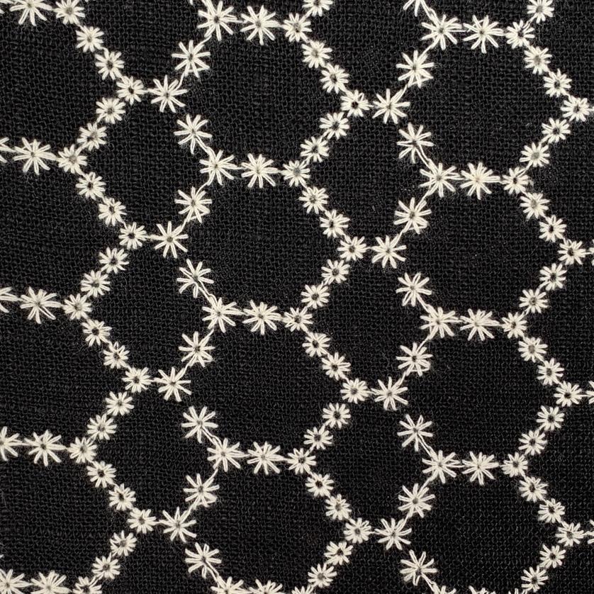 Ein wunderschöner Viskose Leinen Stoff. Die leicht gröbere Webware ist mit zarten Blüten bestickt. Der griffige Stoff hat einen tollen Fall und eignet sich für Sommerhosen, Röcke, Kleider, Blusen oder Tücher.