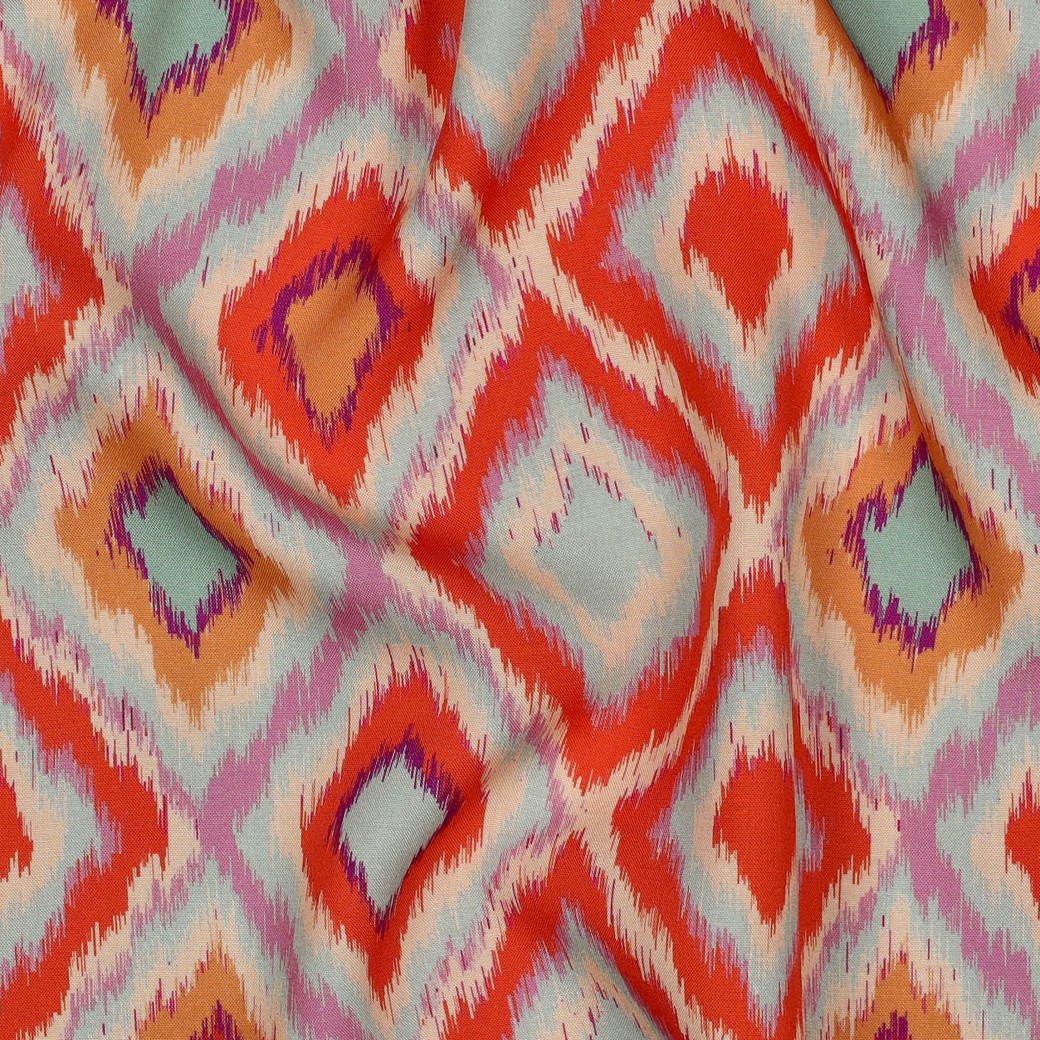 Diese hochwertige Viskose überzeugt mit ihrem weichen, fließenden Fall und einer angenehm glatten Oberfläche. Der Stoff fühlt sich kühl auf der Haut an und sorgt für ein leichtes, komfortables Tragegefühl. Das ausdrucksstarke, grafische Muster verleiht dem Stoff eine moderne, lebendige Optik und macht ihn zu einem echten Blickfang. Erhältlich in drei stilvollen Farbvarianten, die sich vielseitig kombinieren lassen.