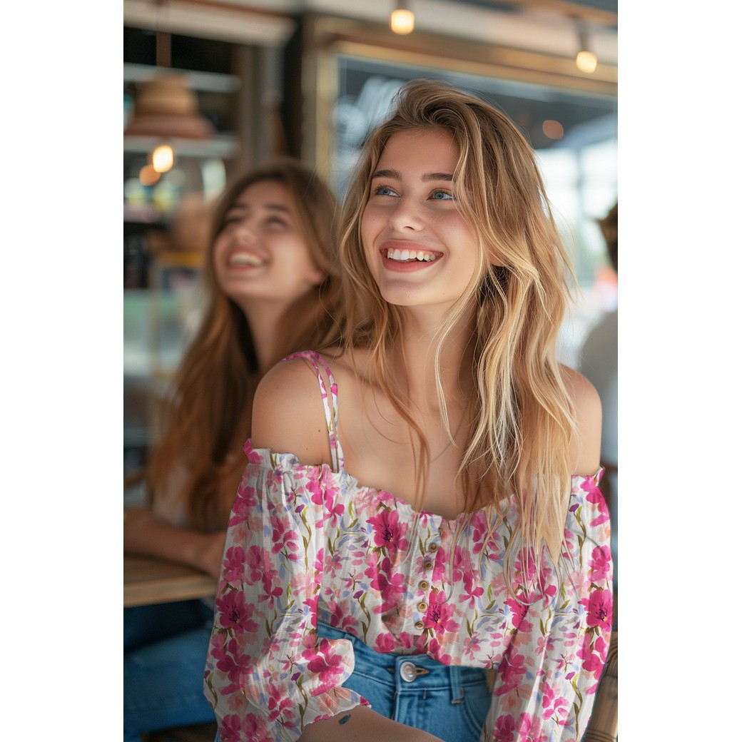 Preview: Viskose mit LENZING™ ECOVERO™ Fasern - Petalia Flowers - ecru/fuchsia