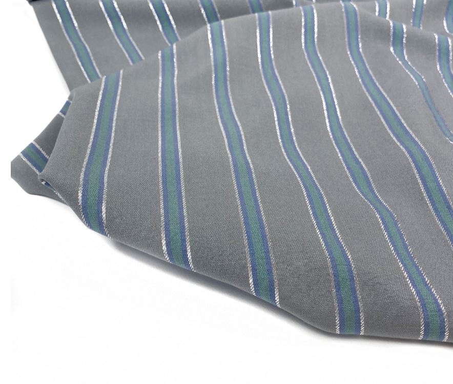 Wunderschöner Viskosestoff im Streifenmuster mit feinen silbernen metallic Streifen. Ideal für Kleider, Röcke und Blusen.