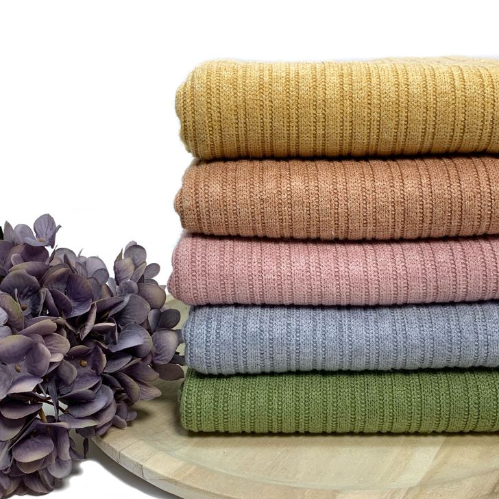 Wunderschöner, sehr weicher schwerer Viskose Strick in Rippen Optik. Eignet sich hervorragend für Strickjacken, Pullover, Strampler oder auch für Accessoires wie Schals und Mützen.