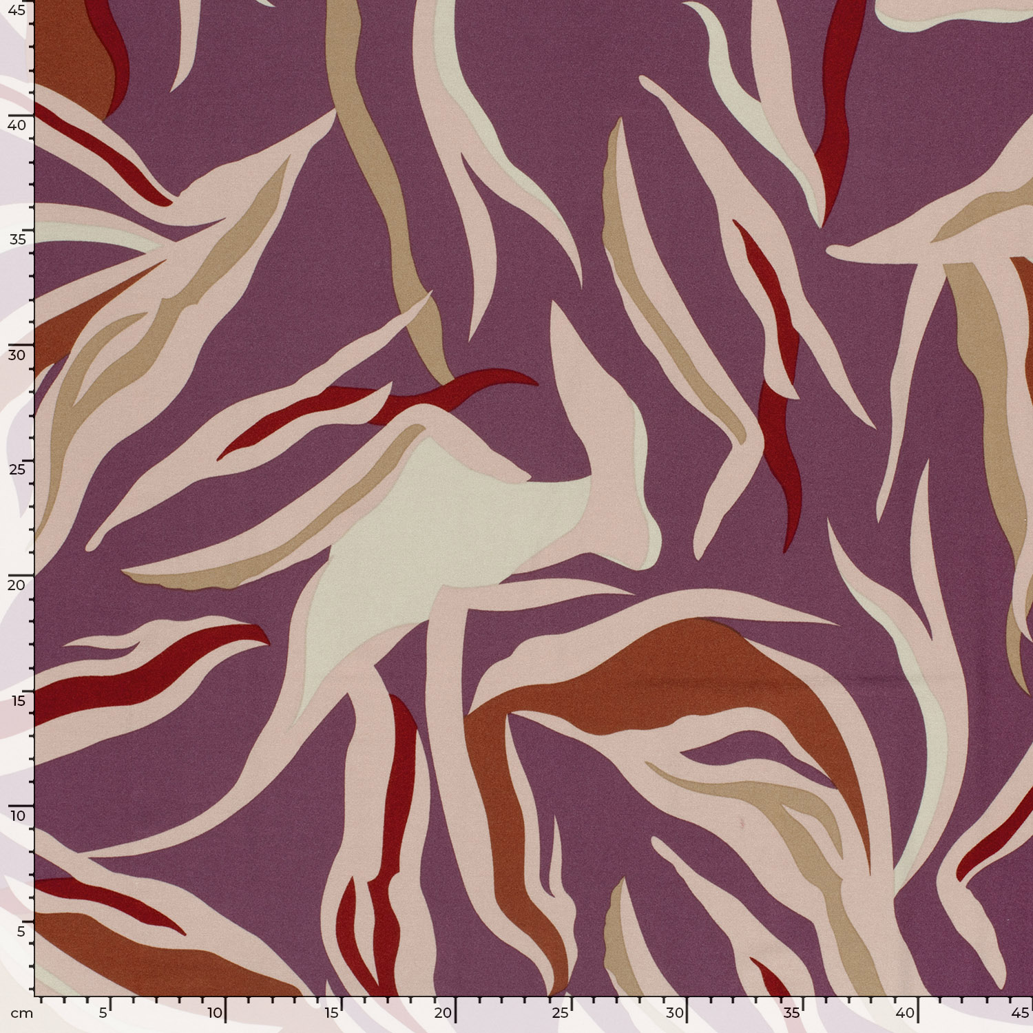 Mit dem Viskosejersey „Aurora Flow“ bringst du Bewegung und Leichtigkeit in deine Garderobe! Das schwungvolle, abstrakte Blättermuster verleiht dem Stoff eine moderne, künstlerische Note – perfekt für stilvolle Outfits mit einem Hauch von Extravaganz.